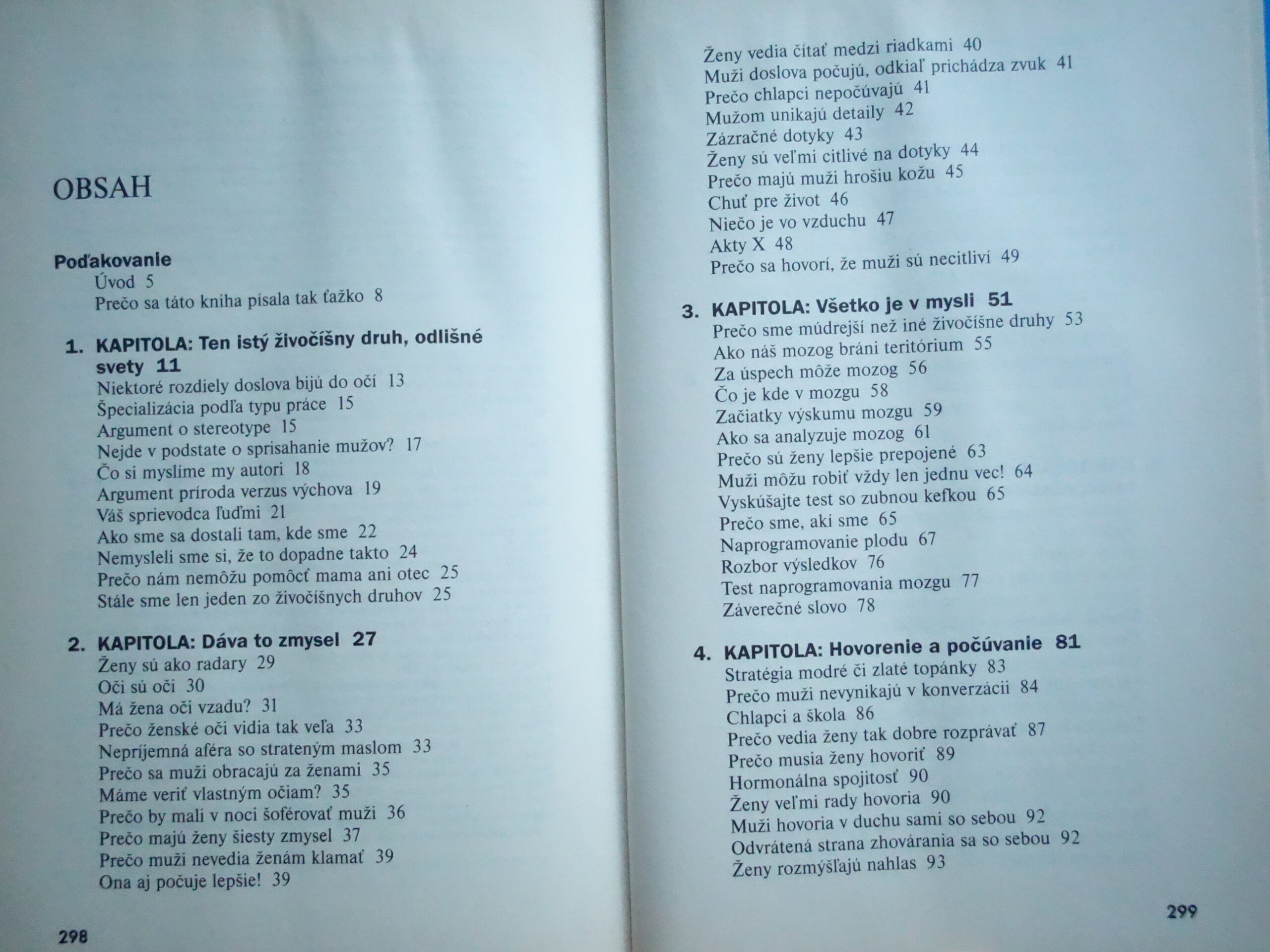 Túto knihu by si mali prečítať všetci muži a ženy, ktorí sa milujú, nenávidia alebo žijú vedľa seba. Dozvedia sa veľa o sebe, o svojom vzťahu a o príslušníkoch opačného pohlavia. Autorská dvojica Allan a Barbara Peasovci zhromaždili najnovšie poznatky z odborov výskumu mozgu, evolučnej biológie, psychológie a sociológie a zhrnuli ich do vtipnej, miestami šokujúcej, ale aj poučnej knihy, v ktorej sa pokúšajú vysvetliť dôvod existencie napätia a rozporov medzi príslušníkmi oboch pohlaví a hľadajú spôsob, ako sa s nimi vyrovnať.