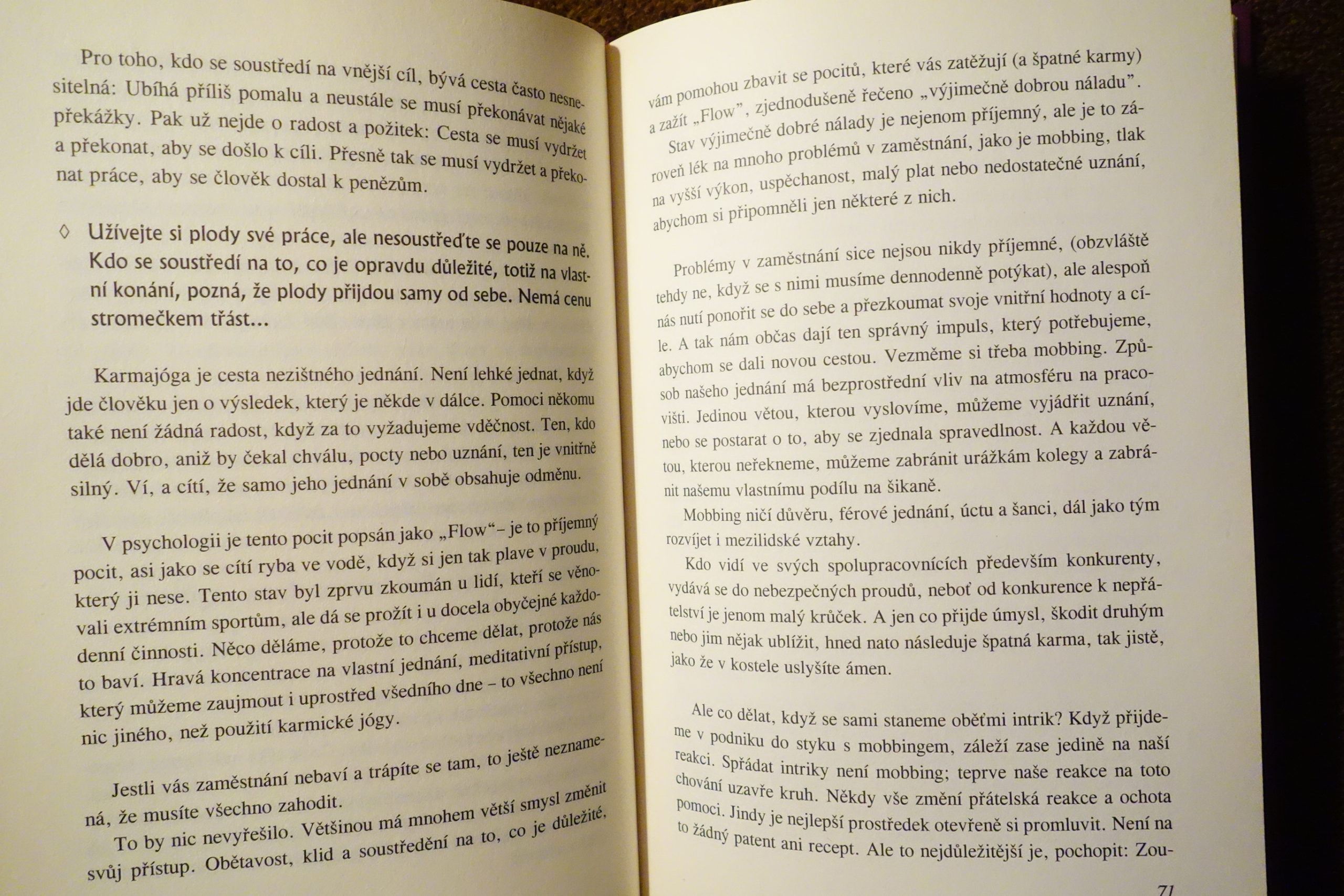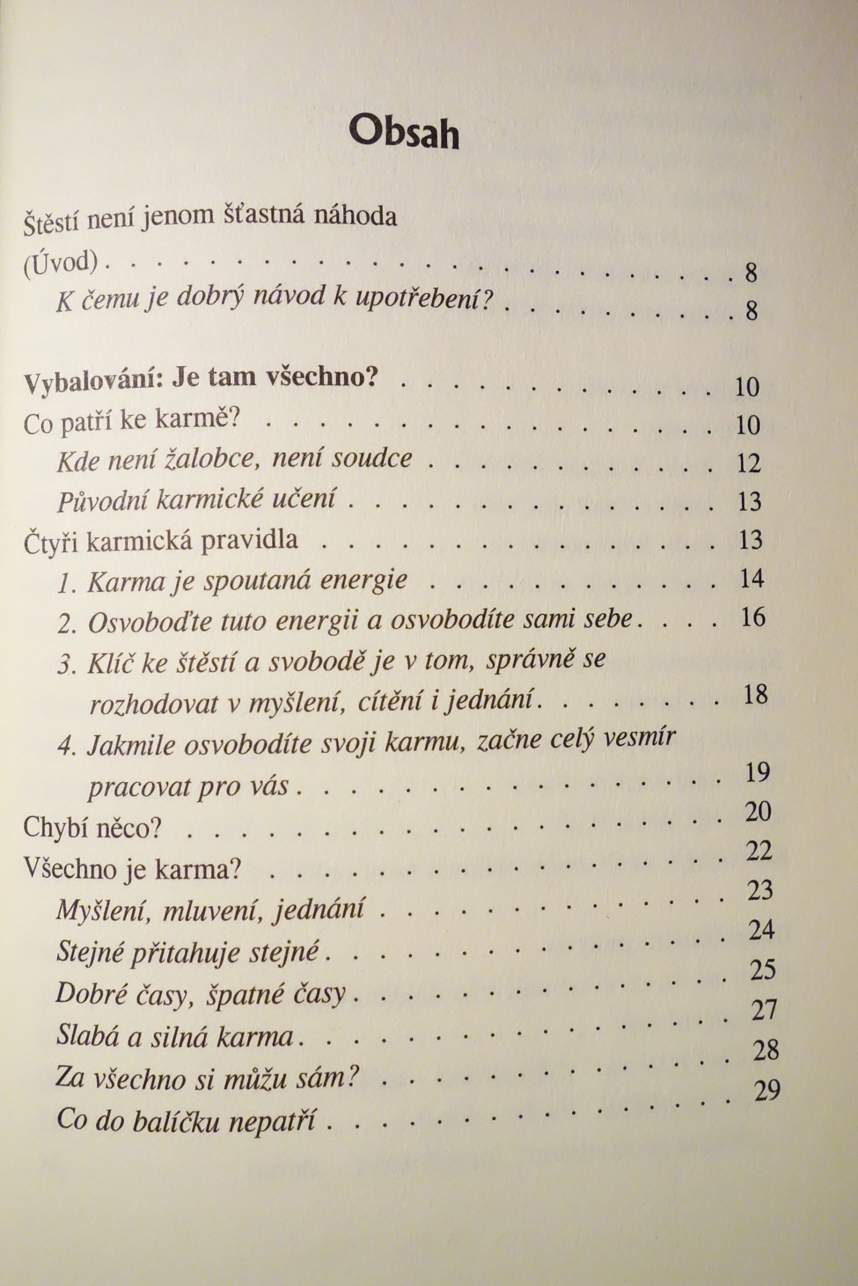 Kniha sa zaoberá použitím filozofie karmy v bežnom živote. Autori to robia dôvtipnou argumentáciou podloženou ľahko pochopiteľnými príkladmi, ale aj humornými anekdotami a samozrejme, konkrétnymi radami.
