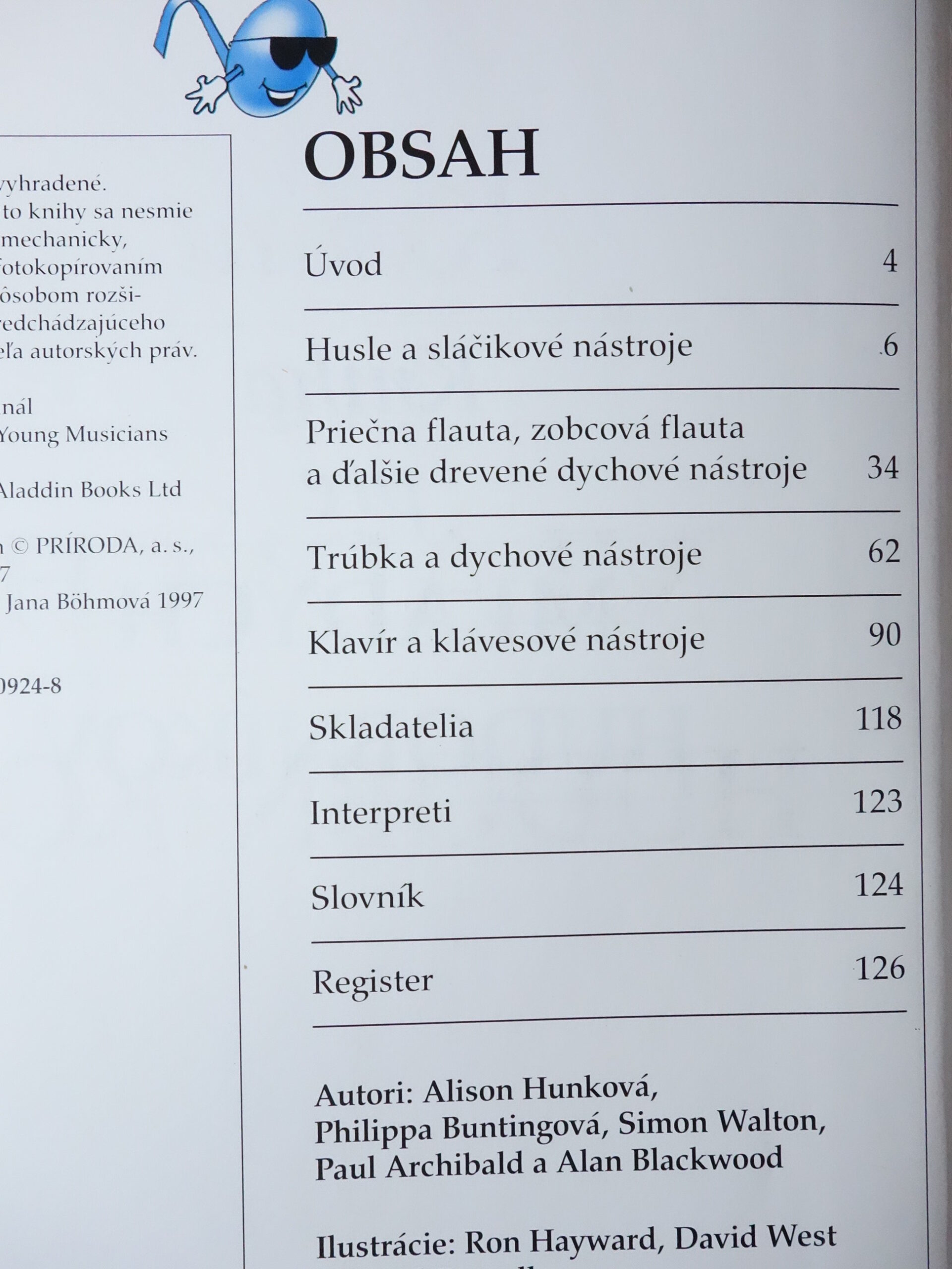 Úlohou knihy je dopĺňať hudobnú výchovu na školách, každá kapitola poskytuje úvod do hudobnej teórie, informácie o tom, ako sa hudba zapisuje i ako sa číta, ako nástroje ladiť a udržiavať a aké sú techniky hry. Zaoberá sa aj životom a dielom významných hudobných skladateľov a interpretov.