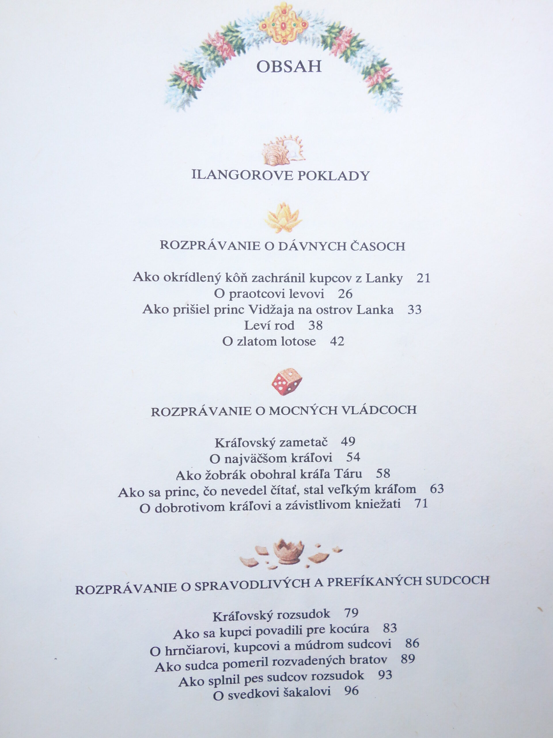 Ako všetky národy na svete, i Sinhálci majú veľmi radi rozprávky. Do rozprávkového hávu zaodeli aj historky z obdobia svojich najstarších dejín. V nich sa možno dozvedieť o tom, ako sa pod vedením legendárneho hrdinu Vidžaju priplavili na ostrov, kde sa stretli s pôvodným obyvateľstvom. Z týchto čias sa zachovali rozprávania o prvých vládcoch Lanky, o ich zázračných príhodách so zlými strigôňmi, ako vznikli prvé kráľovstvá vo svete, ale i novšie príbehy o spravodlivých a prefíkaných sudcoch, remeselníkoch, zvieratách……