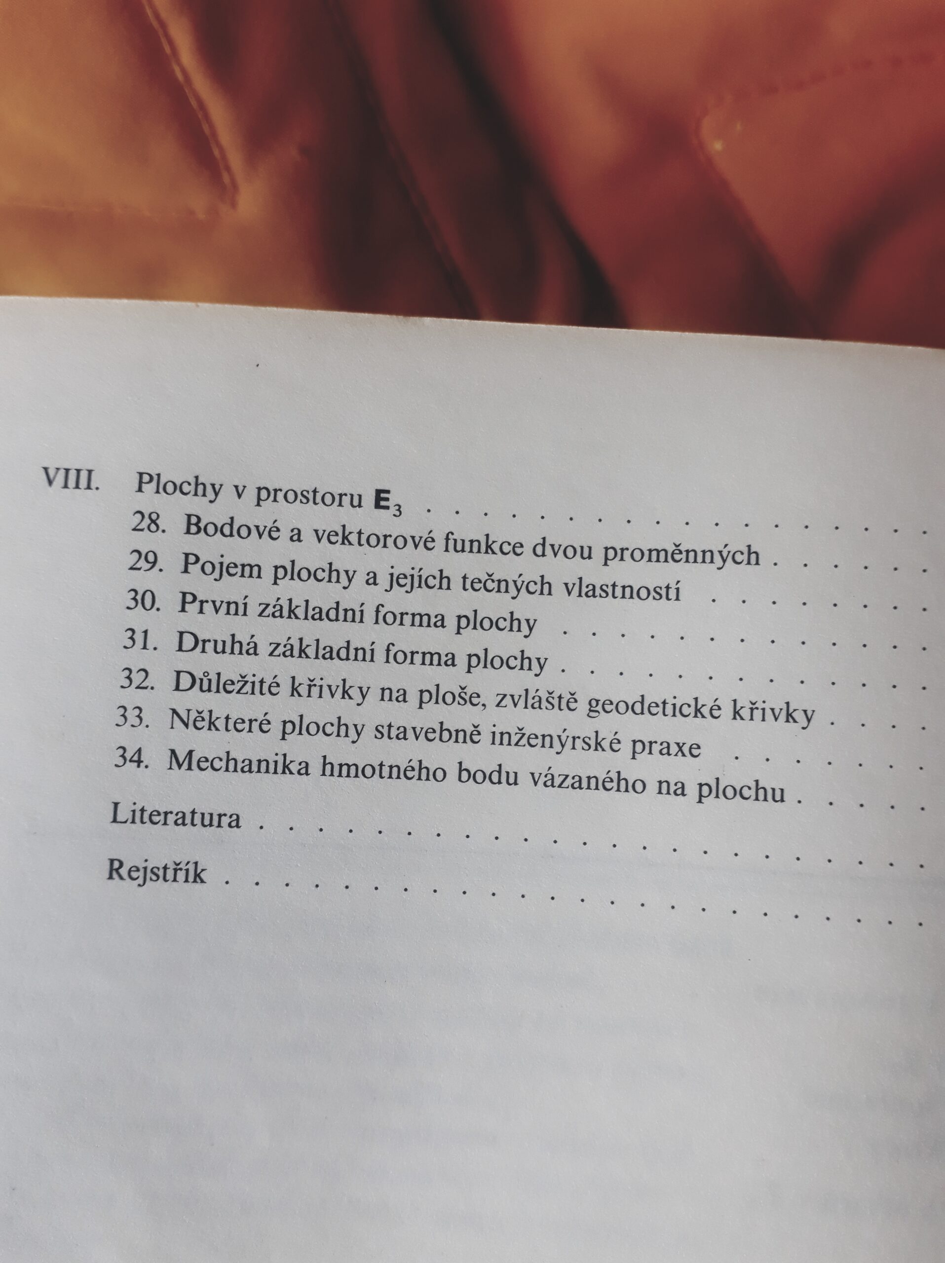 V knize jsou stručně, přehledně a názorně uvedena fakta z analytické a diferenciální geometrie v rovině, v prostoru E se kterým se student na vysokých školách technických směřu setkává v ostatních partiich matematiky a v inženýrských aplikácích.