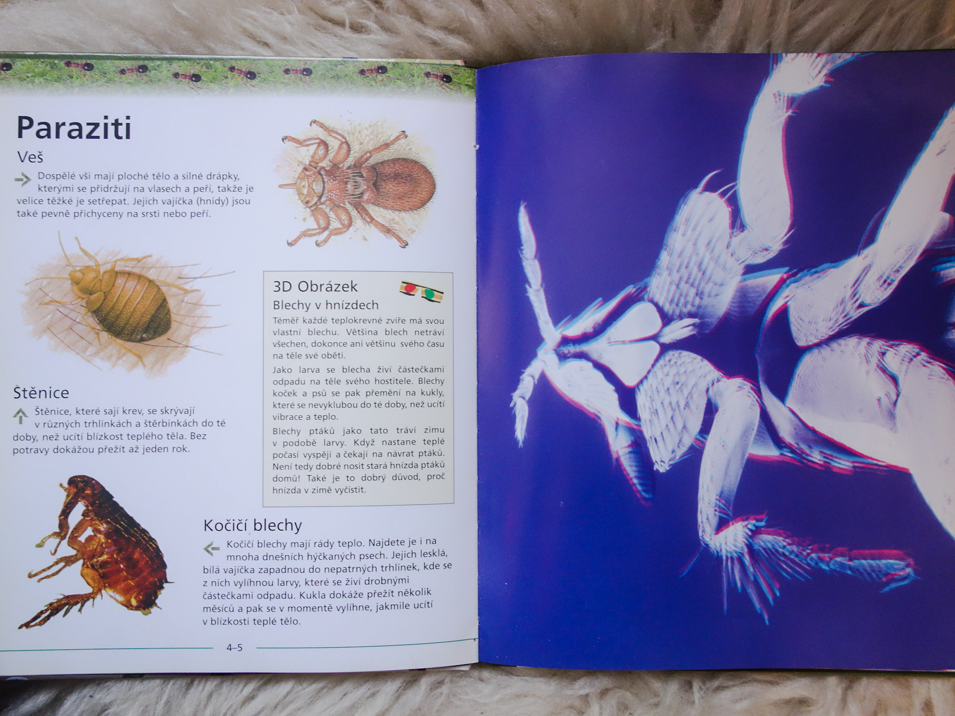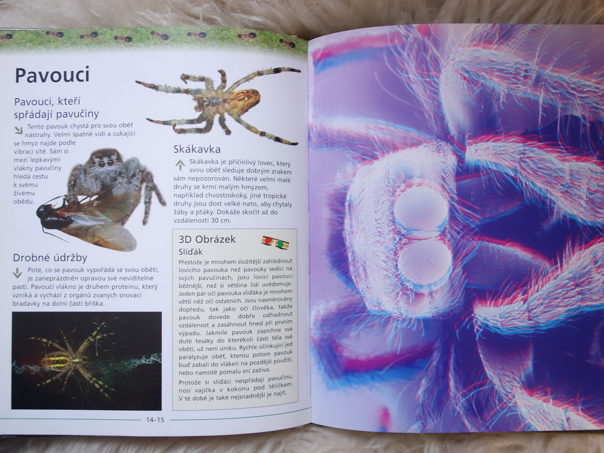 Kniha, určená pre mladšiu generáciu, jednoduchým spôsobom popisuje úžasný svet hmyzu včítane 3D obrázkov. V podobe 3D obrázkov sú znázornené nasledujúce typy hmyzu: mucha domáca, blcha, ucholak, roztoč, komár, strehúň, lumok, zrniarka hrachová, mnohonôžka, cvrček, chvostoskok.