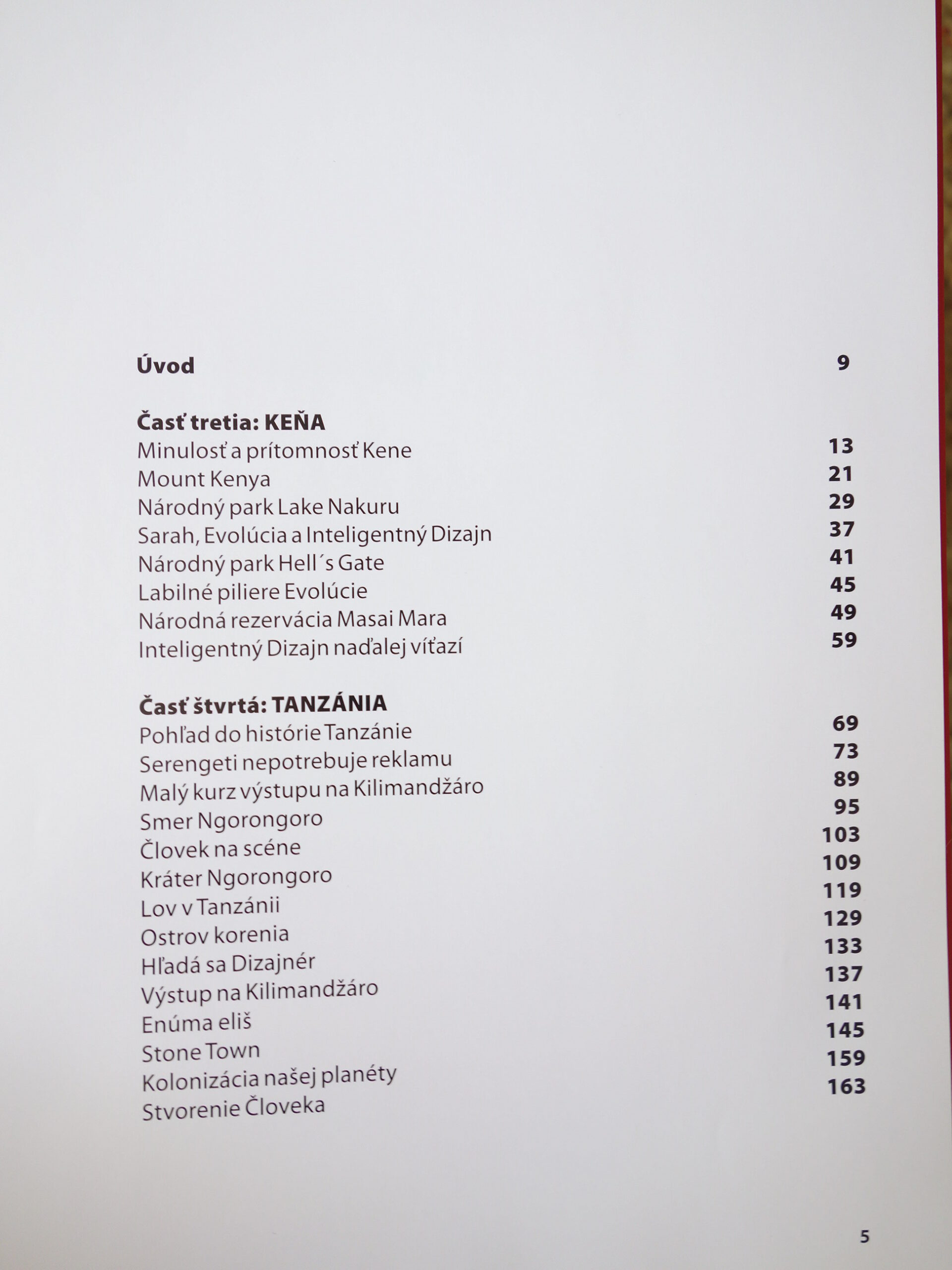 Okrem zvierat sú tu opísané aj prírodné krásy, počnúc najvyššími končiarmi masívu Kilimandžáro a Mt. Kenya a výstupmi na ne, kráter Ngorongoro či Národný park Hell´s Gate (Pekelná brána).
