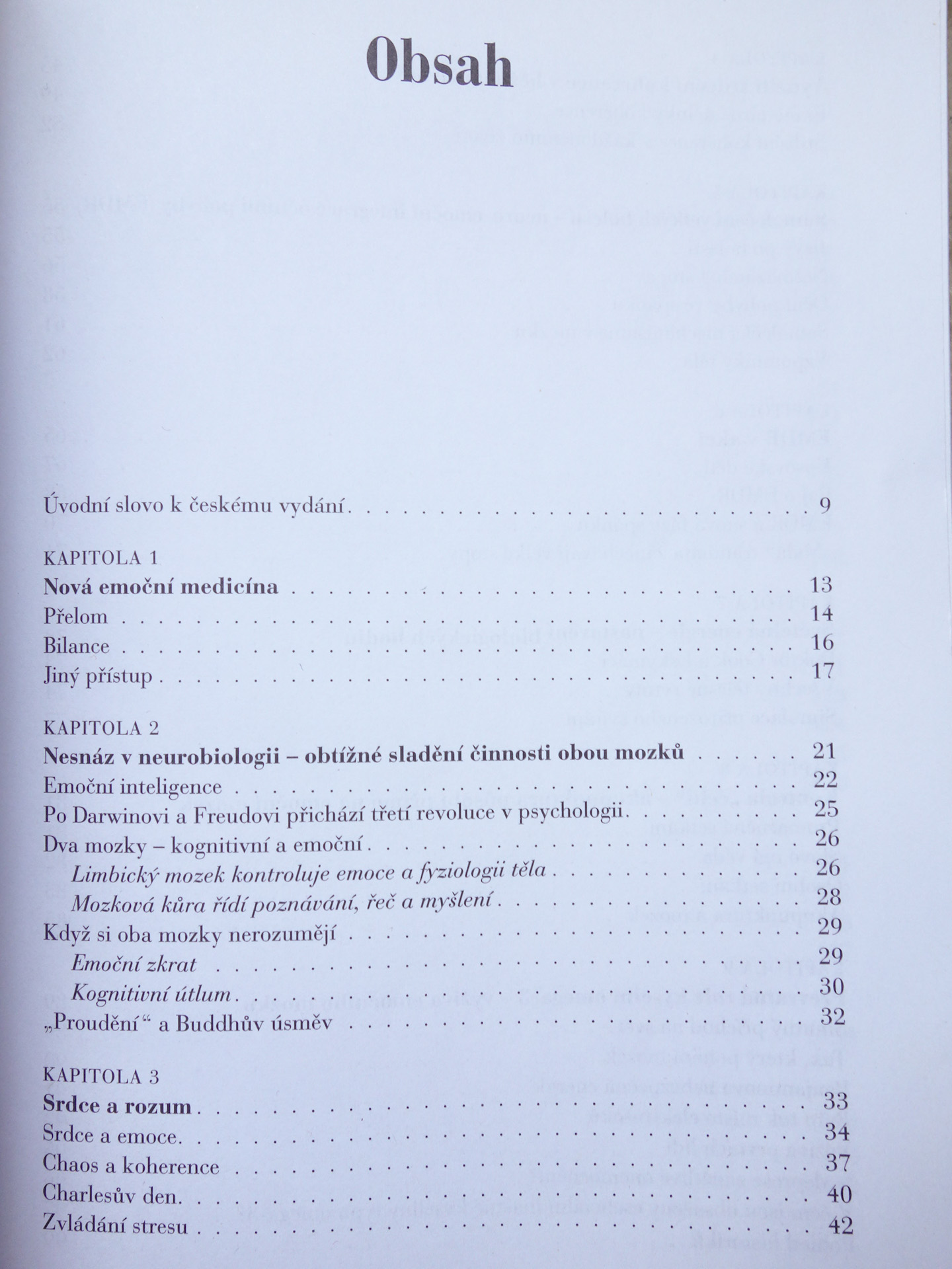 V poslednej dobe zaznamenali neurologické vedy i psychológia v súvislosti s výskumami radikálne zmeny. Tieto zmeny sa prejavili najmä v oblasti neuro-emocionálnej terapie v integrácii s podnetmi na určité časti tela, s regularizáciou srdečného rytmu a synchronizáciou biologických hodín, s fyzickým cvičením, pôsobením mastných kyselín “omega-3”, technikami “afektívnej komunikácie”. Autor vo svojej knihe podáva čitateľným spôsobom príbehy ľudí, u ktorých sa prejavilo akútne duševné ochorenie (stres, úzkosti, depresie…), a ukazuje priebeh ch liečby obvyklými postupmi s podávaním liekov a s využitím metód, ktoré sa praktizujú prostredníctvom telesných podnetov, ktoré nadväzujú na prirodzené mechanizmy “emočného mozgu”, a pomáhajú nájsť stratenú rovnováhu. Autor podáva i zrozumiteľný výklad výskumov, overovaní a výsledkov terapie.
