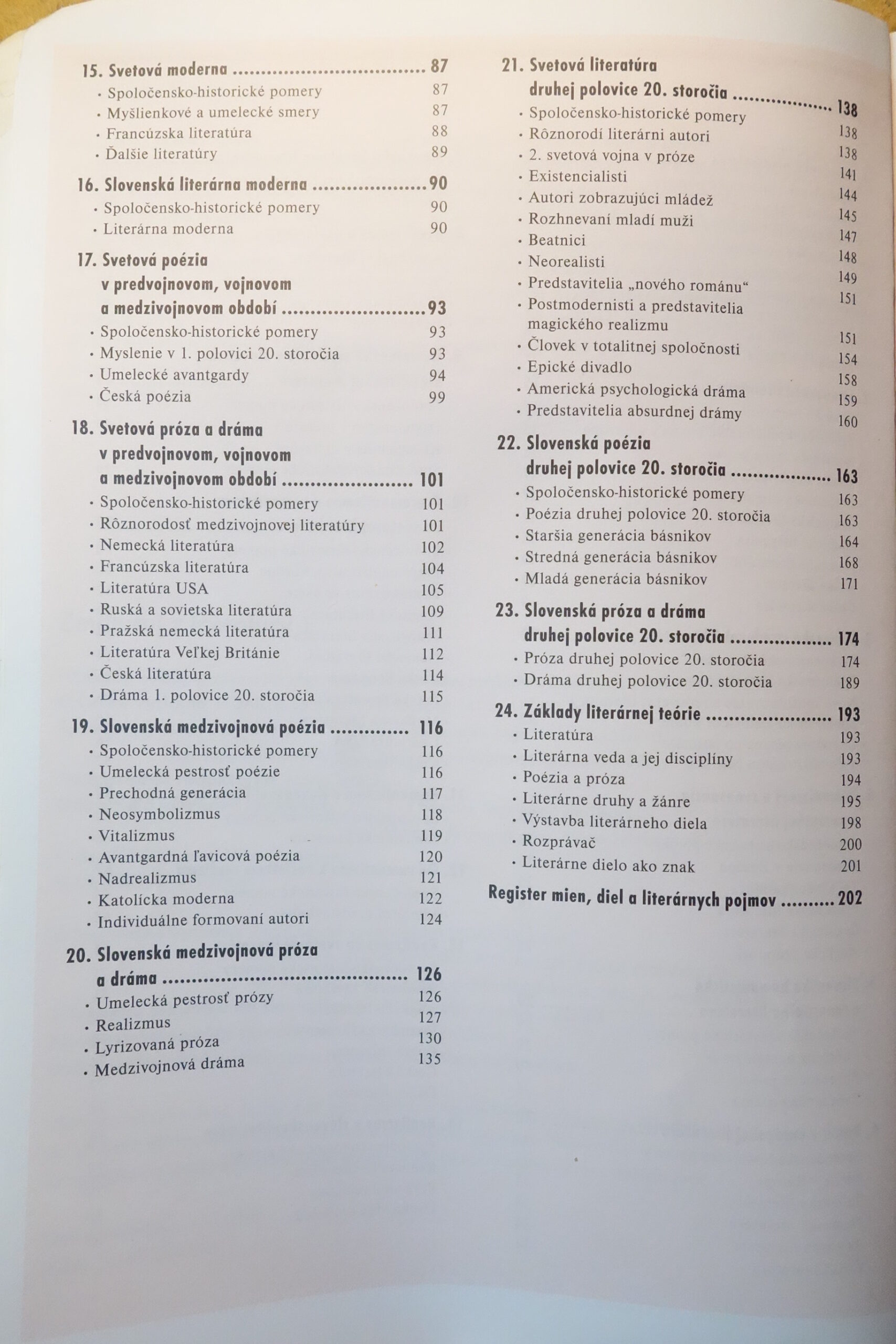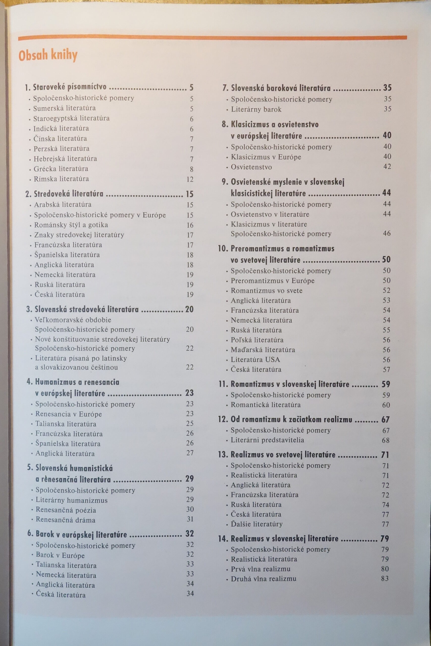 Usporiadanie poznatkov v knihe podporuje ľahkú orientáciu v texte a spríjemňuje učenie. Charakteristika spoločensko-historických pomerov a umeleckých smerov v úvode každej kapitoly umožňuje zaradiť literárne diela do širších súvislostí. Vývoj literatúry je zachytený chronologicky, od staroveku po 20. storočie a zahŕňa slovenskú i svetovú literatúru.