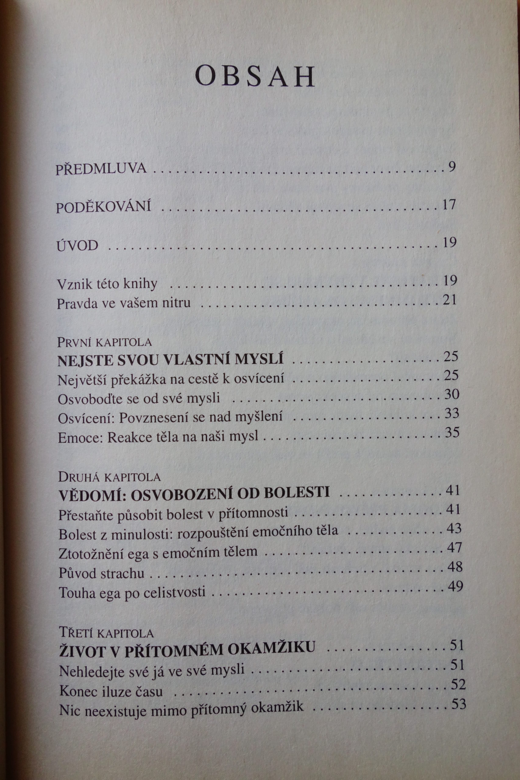 Tolle nás vo svojej knihe pozýva, aby sme nastúpili na cestu duchovného osvietenia, tým, že sa vzdáme nášho falošného ja, ktoré je produktom našej mysle a nájdeme svoje skutočné ja a hlbokú vnútornú radosť v prítomnom okamžiku. Takým spôsobom sa môžeme stať viac milujúcimi a vytvárať skutočné spojenia medzi naším skutočným ja a druhými ľuďmi.