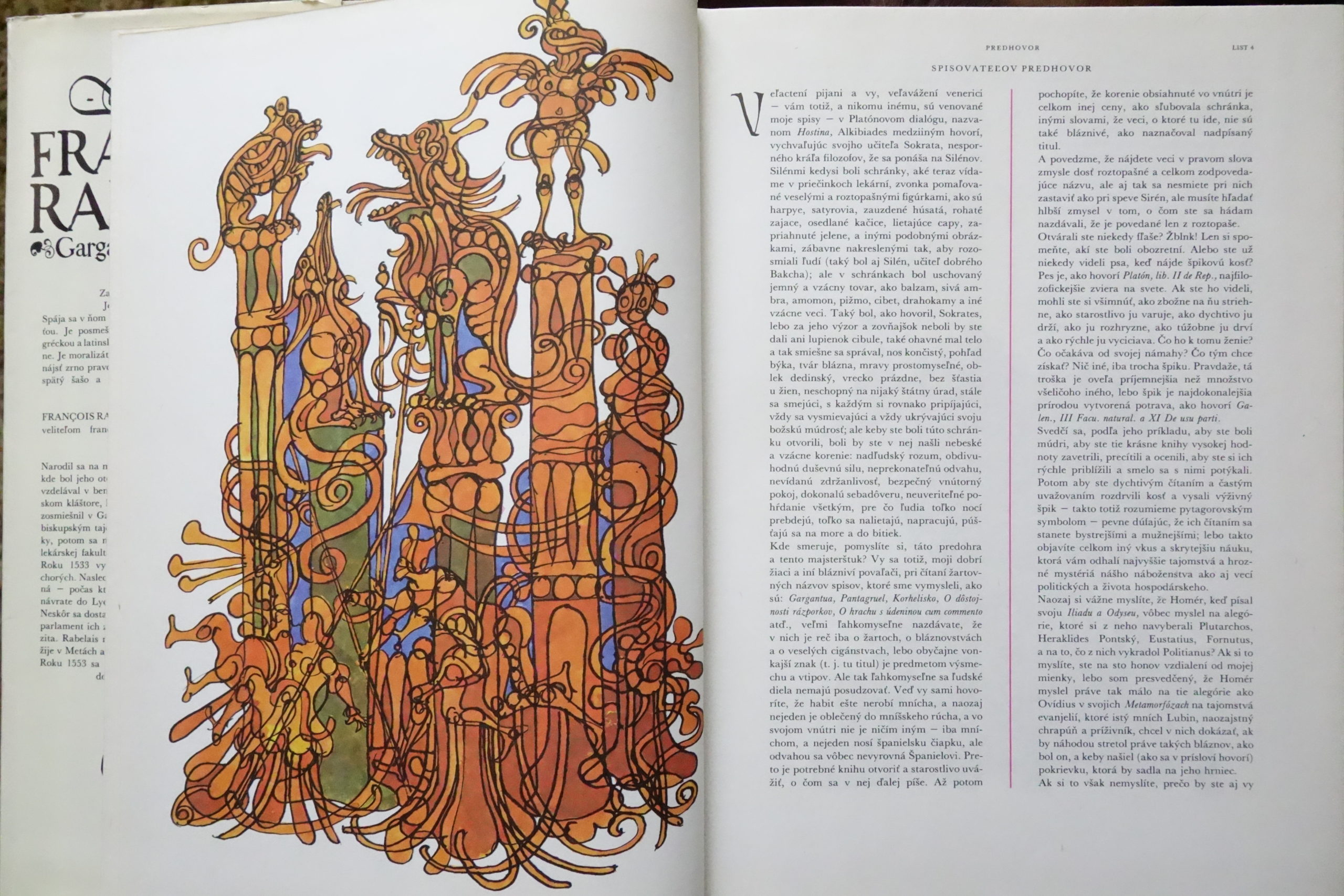 “Prvé tri časti slávneho renesančného diela francúzského autora, parodická epopeja života dvoch obrov, Gargantui a jeho syna Pantagruela, reprezentuje ostrú kritiku spoločenských rozbrojov vtedajšej doby najmä scholastickej výchovy mládeže, nestriedmeho života cirkvi, pokrytectva a skorumpovanosti súdnictva, sociálnych pomerov a vojen.