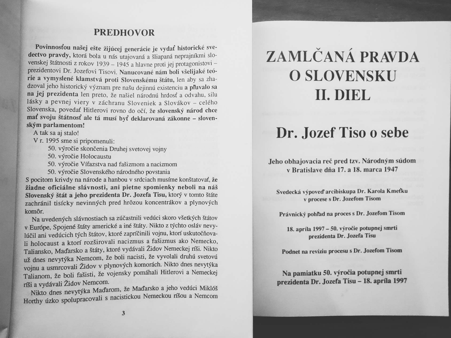 Prvá Slovenská republika, Prvý slovenský prezident Dr. Jozef Tiso, Židovská otázka na Slovensku, Katolícka cirkev a tragédia slovenských židov, Obhajovacia reč prezidenta Dr. Jozefa Tisu, atď.