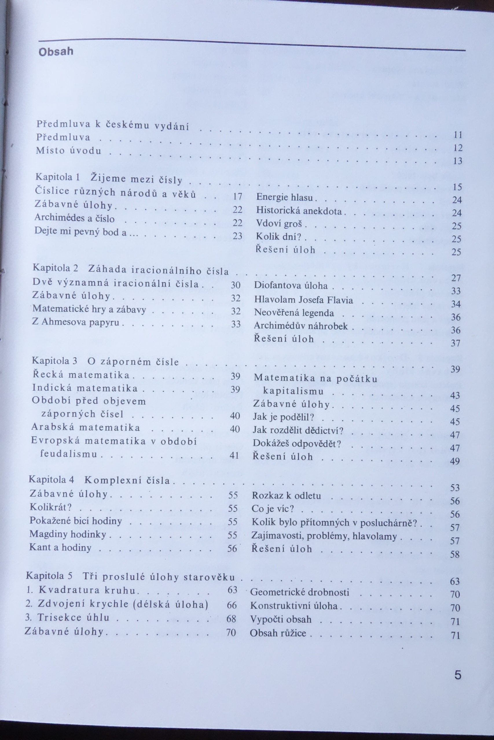 Knižka vtipnou a zábavnou formou zoznamuje čitateľa s mnohými význačnými objavmi z histórie matematiky a s množstvom ďalších zaujímavostí z elementárnej matematiky a z niektorých oblastí vyššej matematiky ako napr. analytickej geometrie, topológiou, variačného počtu, počtu pravdepodobnosti).
