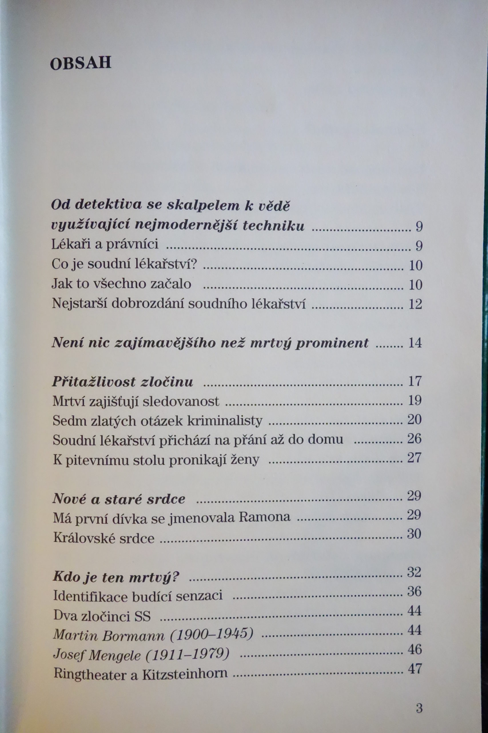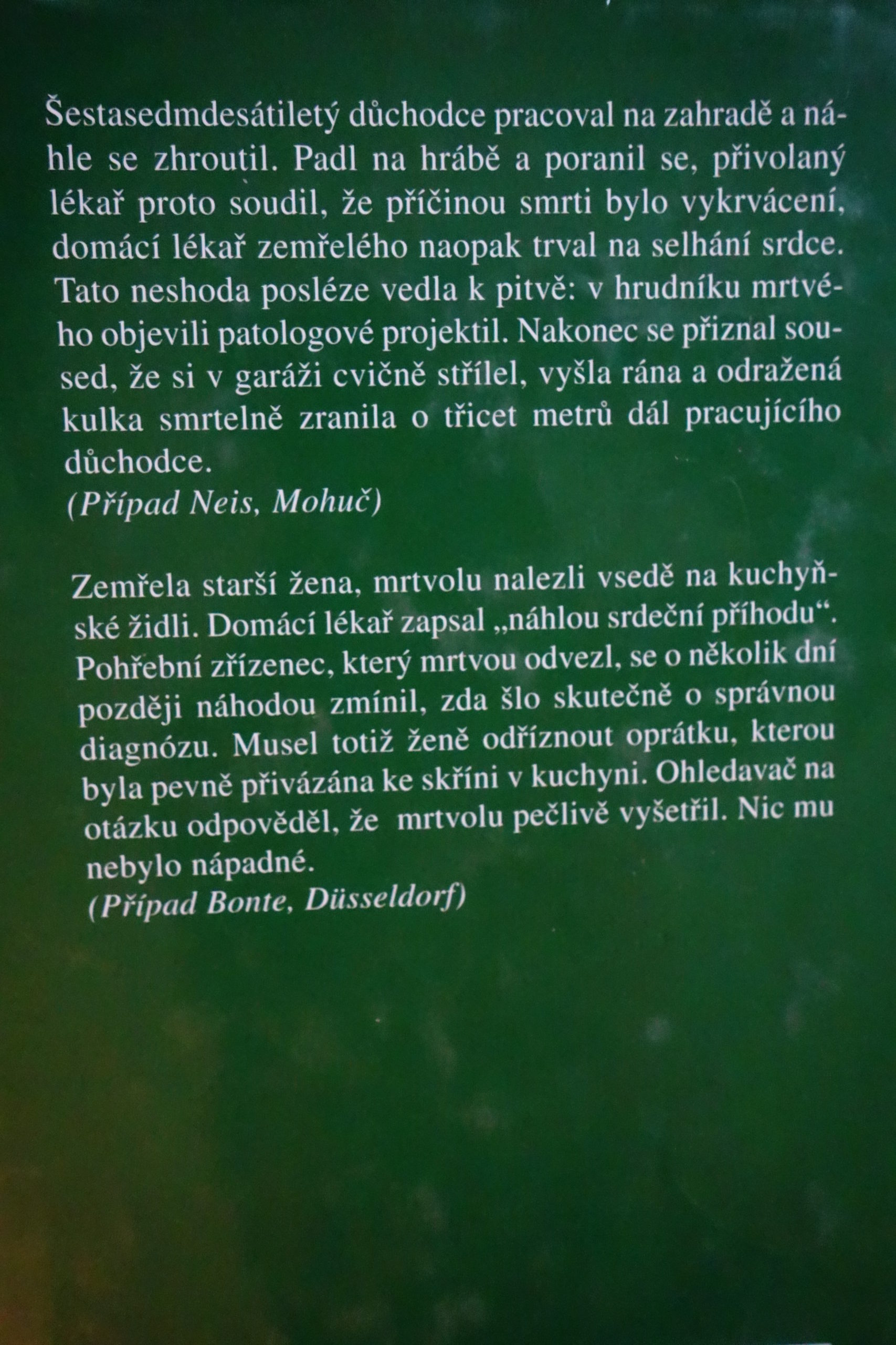 Táto stručná história súdneho lekárstva rozoberá najzaujímavejšie kauzy, v ktorých lekárov posudok pomohol vniesť svetlo do záhadnej udalosti, či naopak nedbalá práca kriminálny prípad zamotala a na lavici obžalovaných sa ocitol nevinný.
