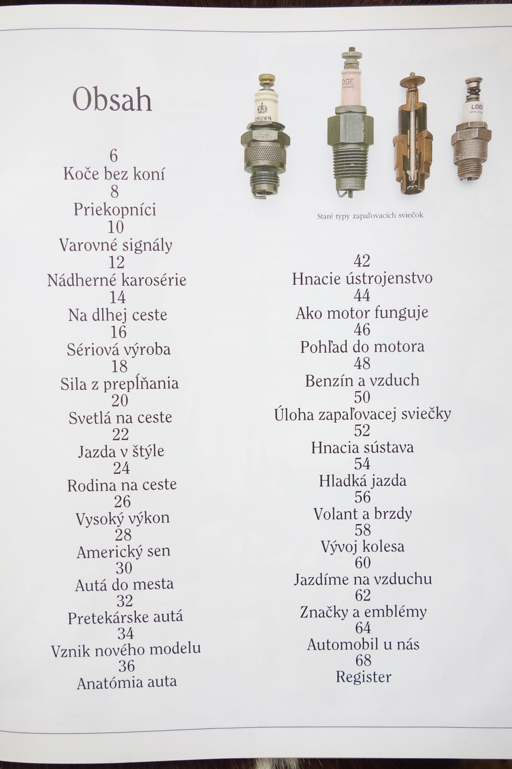 Čitateľ uvidí jedno z najstarších áut na svete, fantastické, ale krásne trúby veteránov, dozvie sa ako sa vyrábal Ford Modelu T, prečo autá potrebujú prevodovku či ako šoféri chladili kedysi motor.
