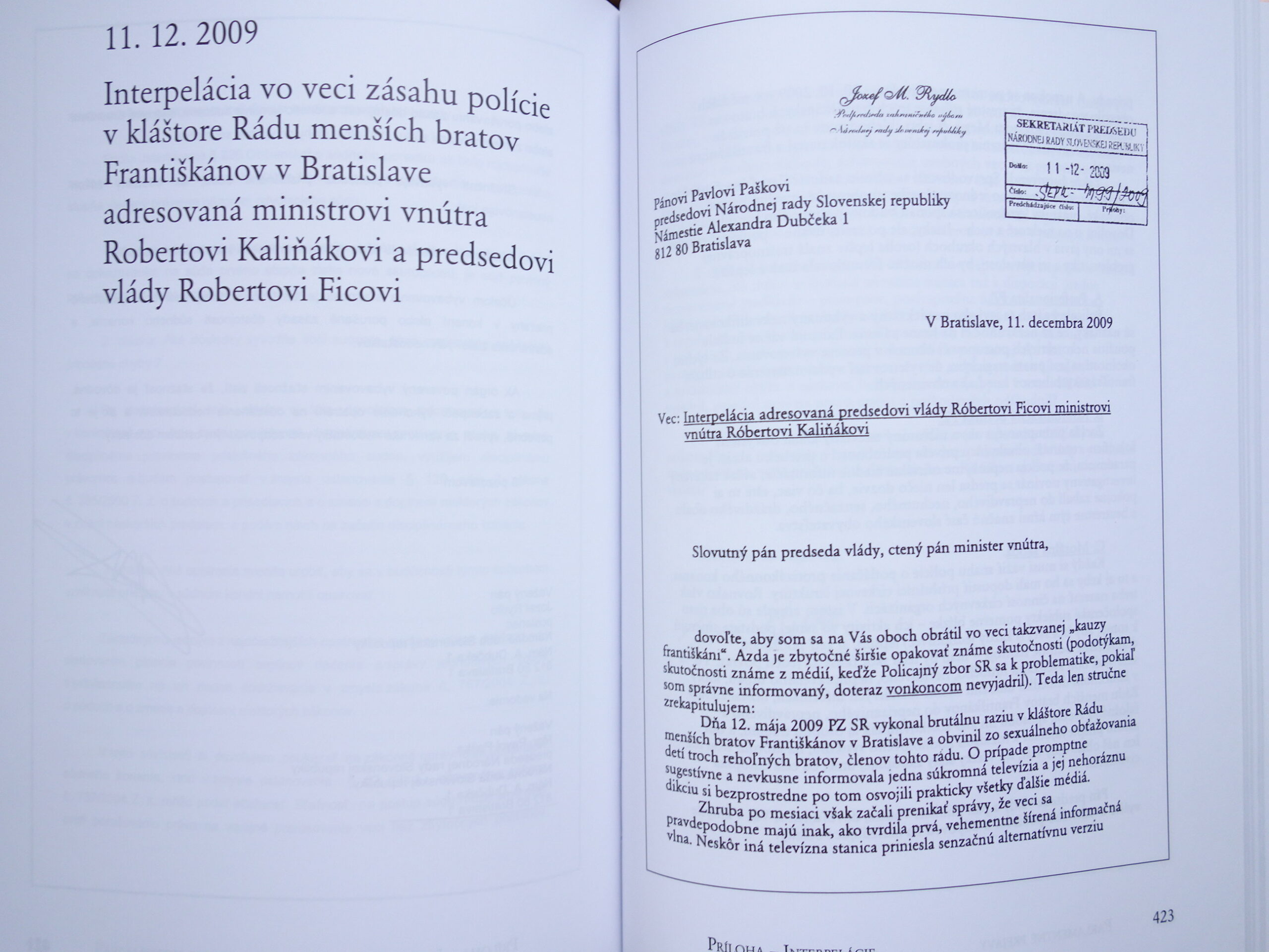 Kniha zaznamenáva poslanecké pôsobenie Jozefa M. Rydlu (1948) v najvyššom zákonodarnom zbore prostredníctvom 36 textov jeho prejavov prednesených v parlamentných rozpravách, ako aj ďalších dokumentov, na príprave ktorých sa podieľal – návrhov zákonov, vyhlásení či interpelácií. Obraz o jeho angažovanosti v tom období dotvárajú príležitostné prejavy z rozličných podujatí, médiám poskytnuté rozhovory i rozsiahla obrazová príloha.