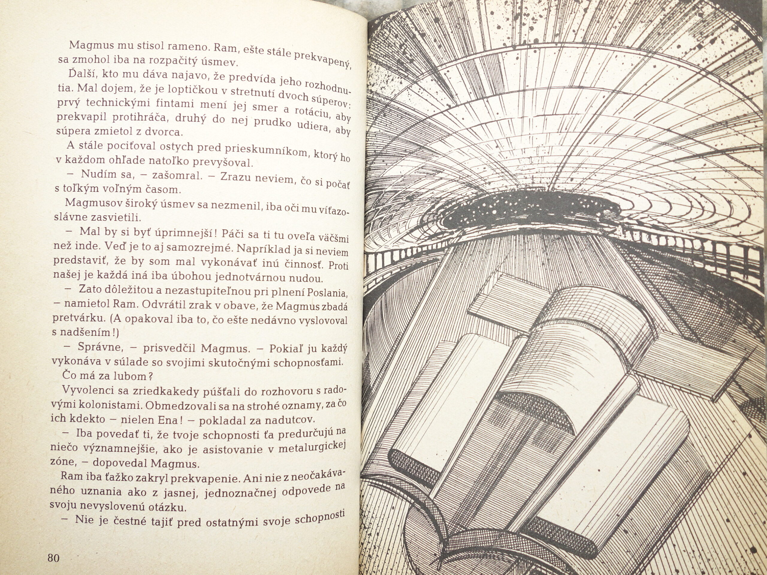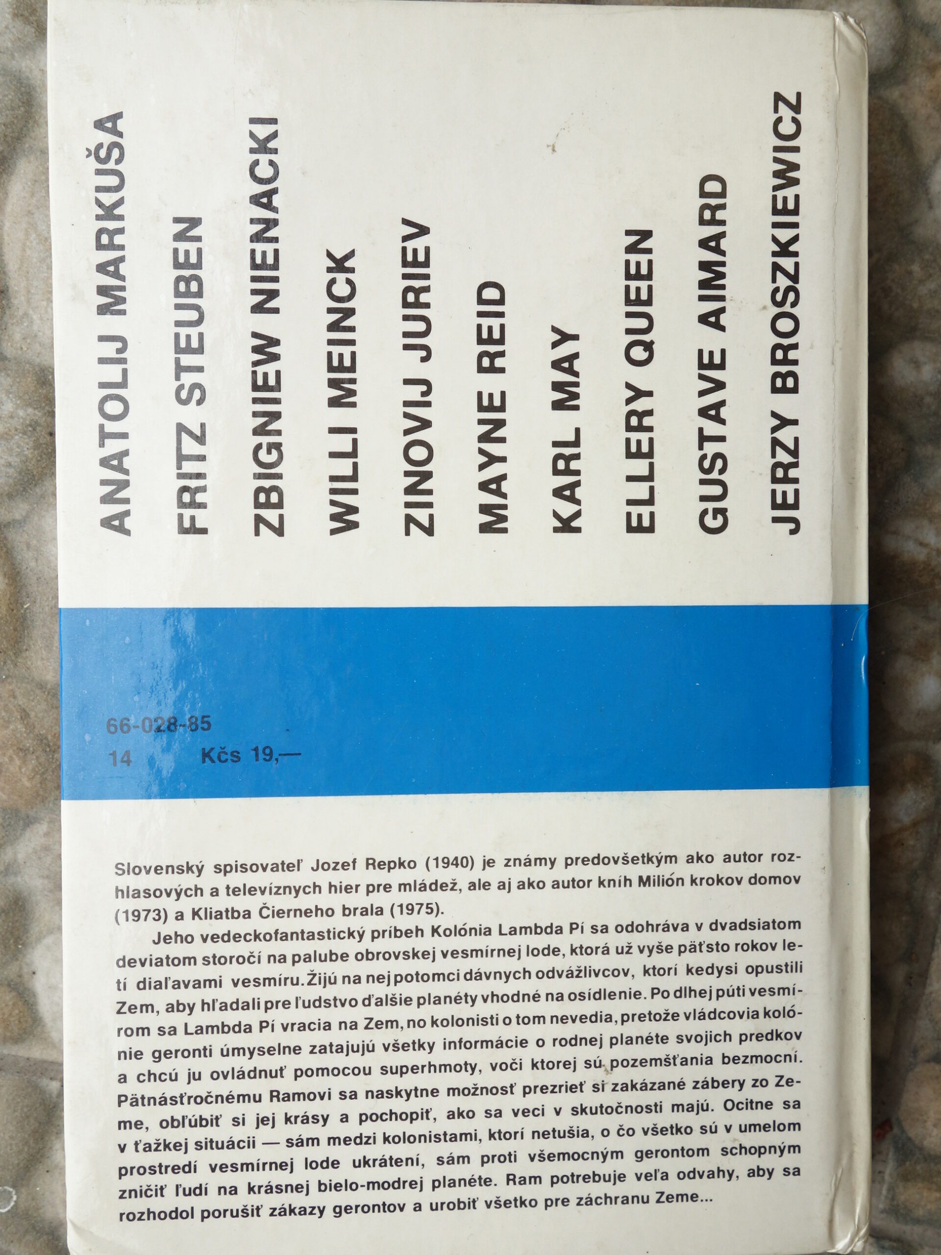 “Vedeckofantastický príbeh Kolónia Lambda Pí sa odohráva v dvadsiatom deviatom storočí na palube obrovskej vesmírnej lode, ktorá už vyše päťsto rokov letí diaľavami vesmíru. Žijú na nej potomci dávnych odvážlivcov, ktorí kedysi opustili Zem, aby hľadali pre ľudstvo ďalšie planéty vhodné na osídlenie. Po dlhej púti vesmírom sa Lambda Pí vracia na Zem, no kolonisti o tom nevedia, pretože vládcovia kolónie geronti úmyselne zatajujú všetky informácie o rodnej planéte svojich predkov a chcú ju ovládnuť pomocou superhmoty, voči ktorej sú pozemšťania bezmocní. Pätnásťročnému Ramovi sa naskytne možnosť prezrieť si zakázané zábery zo Zeme, obľúbiť si jej krásy a pochopiť, ako sa veci v skutočnosti majú. Ocitne sa v ťažkej situácii – sám medzi kolonistami, ktorí netušia, o čo všetko sú v umelom prostredí vesmírnej lode ukrátení, sám proti všemocným gerontom schopným zničiť ľudí na krásnej bielo-modrej planéte. Ram potrebuje veľa odvahy, aby sa rozhodol porušiť zákazy gerontov a urobiť všetko pre záchranu Zeme…“