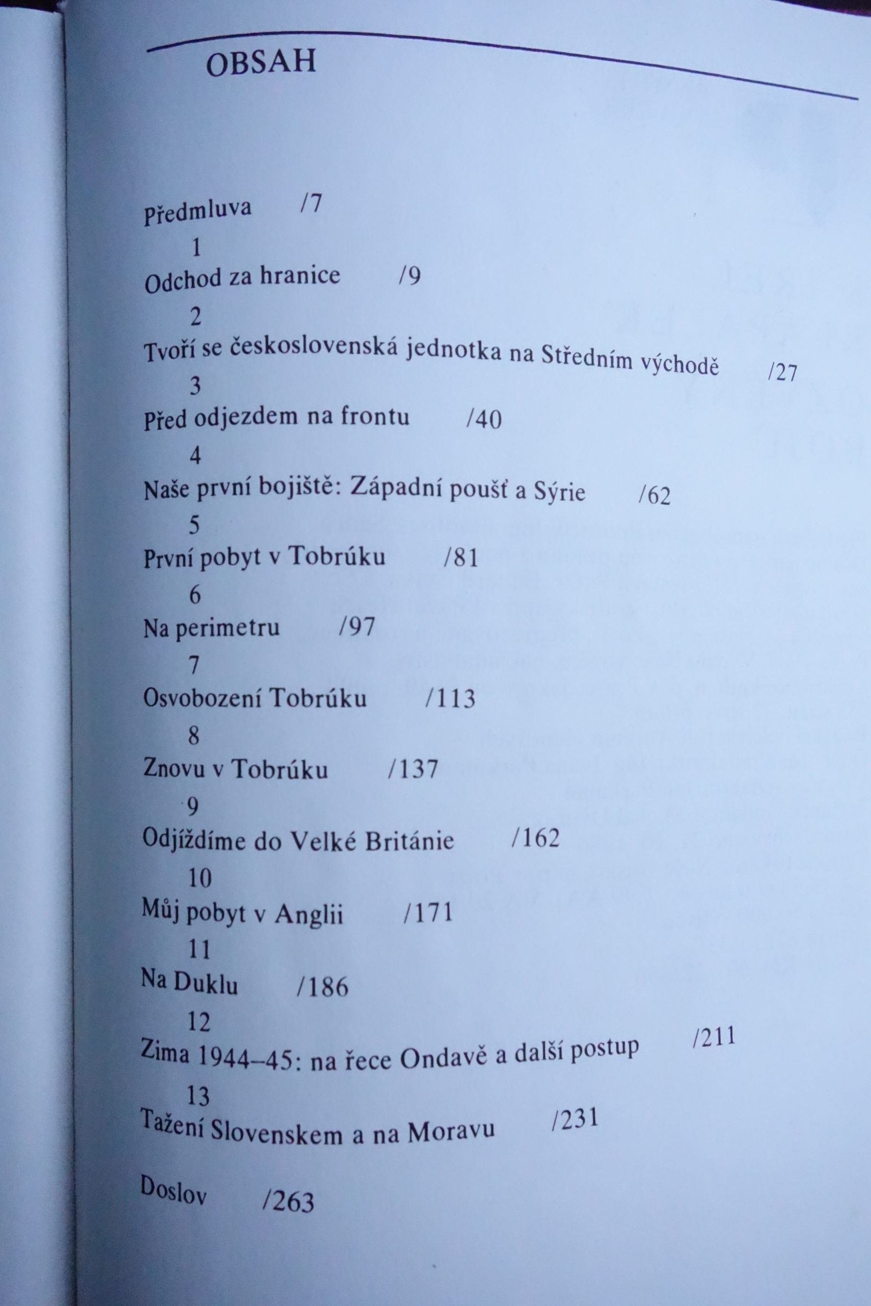 Spomienky armádneho generála K. Klapálka, popredného činiteľa československého vojenského odboja v zahraničí. Po okupácii Československa autor v roku 1940 emigroval a pôsobil v 11 československom prápore na Strednom východe a ako podplukovník sa zúčastnil protifašistických bojov v Sýrii a Lýbii po boku Angličanov, Poliakov, Indov či Austrálčanov. Po krátkom pobyte v londýnskej vojenskej správe, sa nakoniec pridal k 1. československému armádnemu zboru v Sovietskom zväze, spolu s ktorým sa podieľal na najťažších povstaleckých bojoch na Dukle. Svoju bojovú cestu ukončil ako veliteľ 1. československého armádneho zboru, po oslobodení v Prahe.