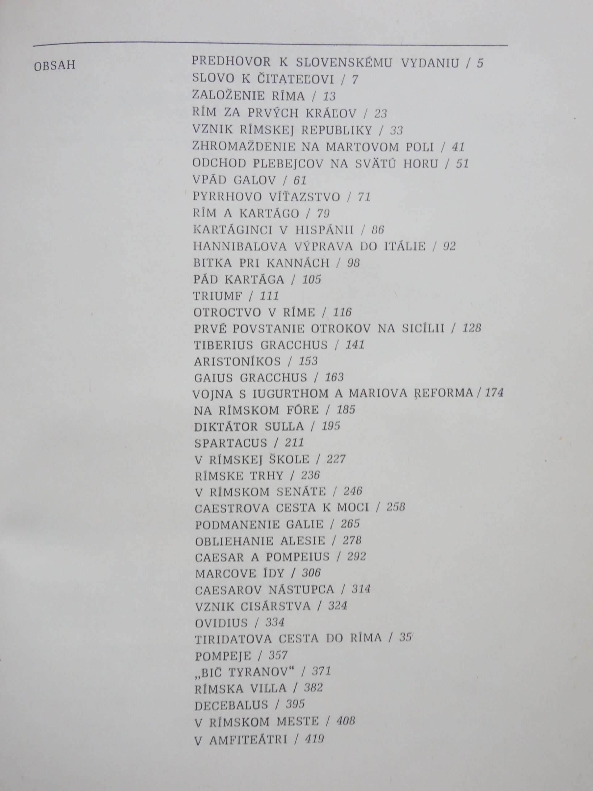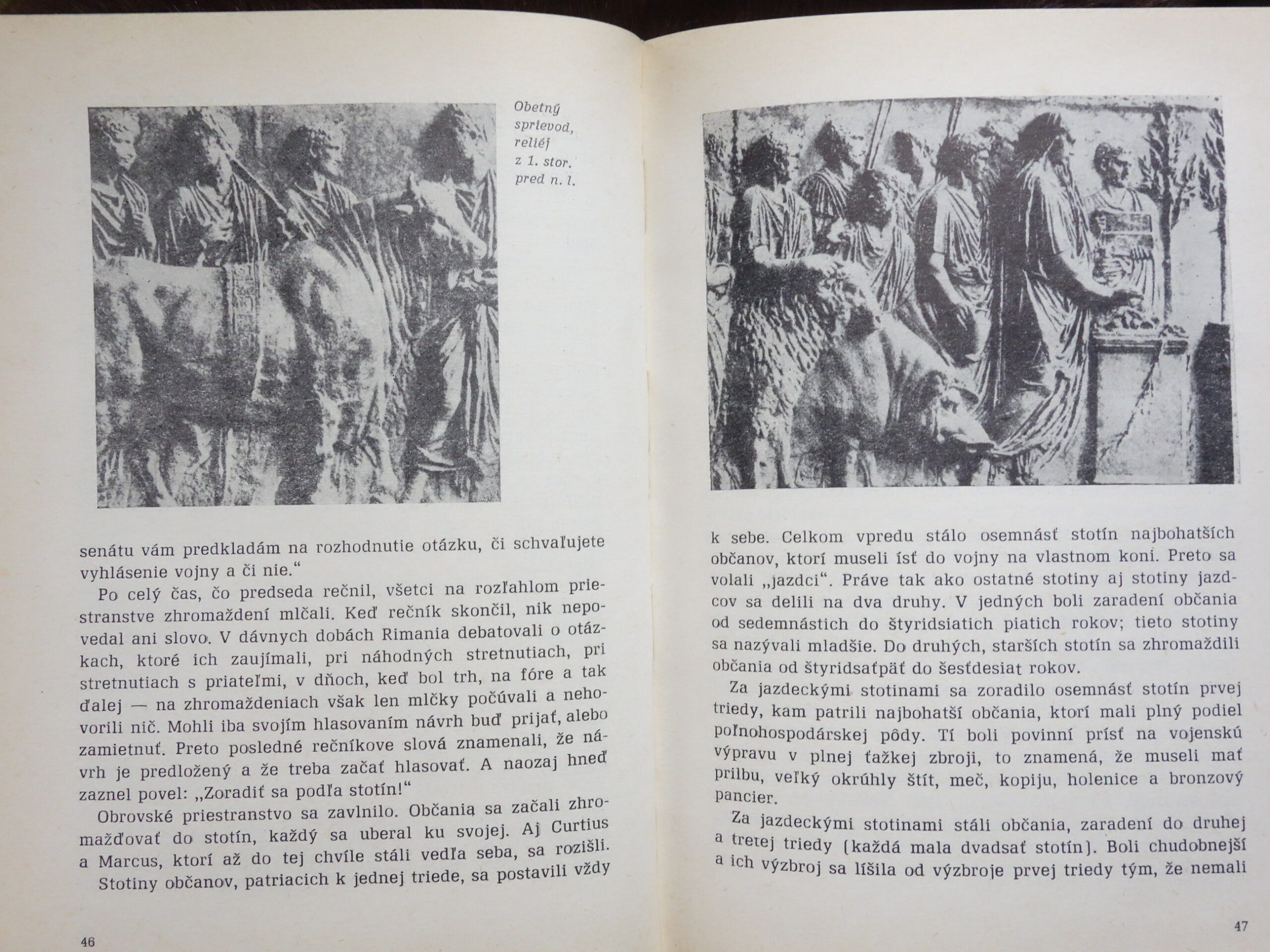 Čítanka k dejinám starovekého Ríma. Je obohatená o ukážky prekladov z diel starovekých spisovateľov a má formu rozprávania, beletristickej poviedky. Podrobný opis prostredia, všedného, každodenného života príslušníkov všetkých vrstiev rímskej spoločnosti, spolu s dramatickosťou rozprávania pomôže čitateľovi preniknúť do myslenia, predstáv a túžob ľudí dávnej minulosti, a tak minulosť ľahšie pochopiť.