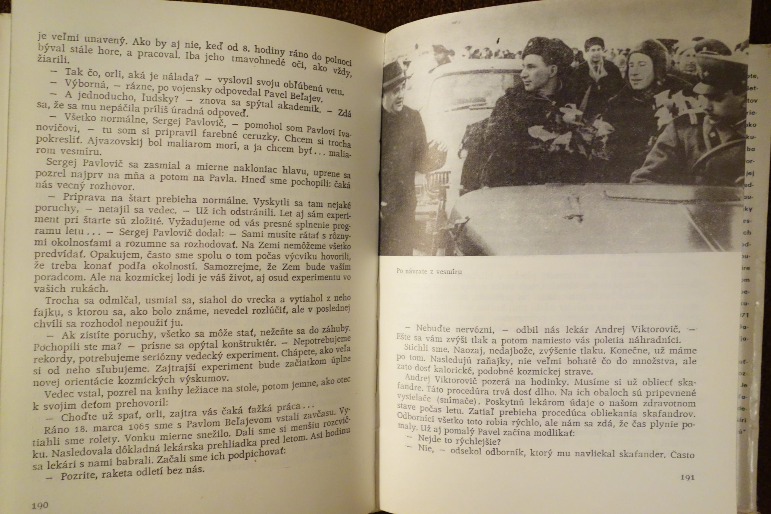 Kniha informuje zaujímavo a ľudsky povzbudivo o živote, práci, činnosti, o príprave všetkých sovietskych kozmonautov na lety do vesmíru v rozmedzí rokov 1961-1971, o ich priebehu, výsledkoch a význame, ako aj o ďalších perspektívach výskumu vesmíru. Názornosť jej obsahu zvyšujú fotografie jednotlivých kozmonautov zachycujúce niektoré úseky ich činnosti pri príprave na vesmírne “výpravy“ i vo všedných každodenných situáciách. Upútavajú v nej aj komentáre k jednotlivým kozmickým letom a typom kozmických lodí.