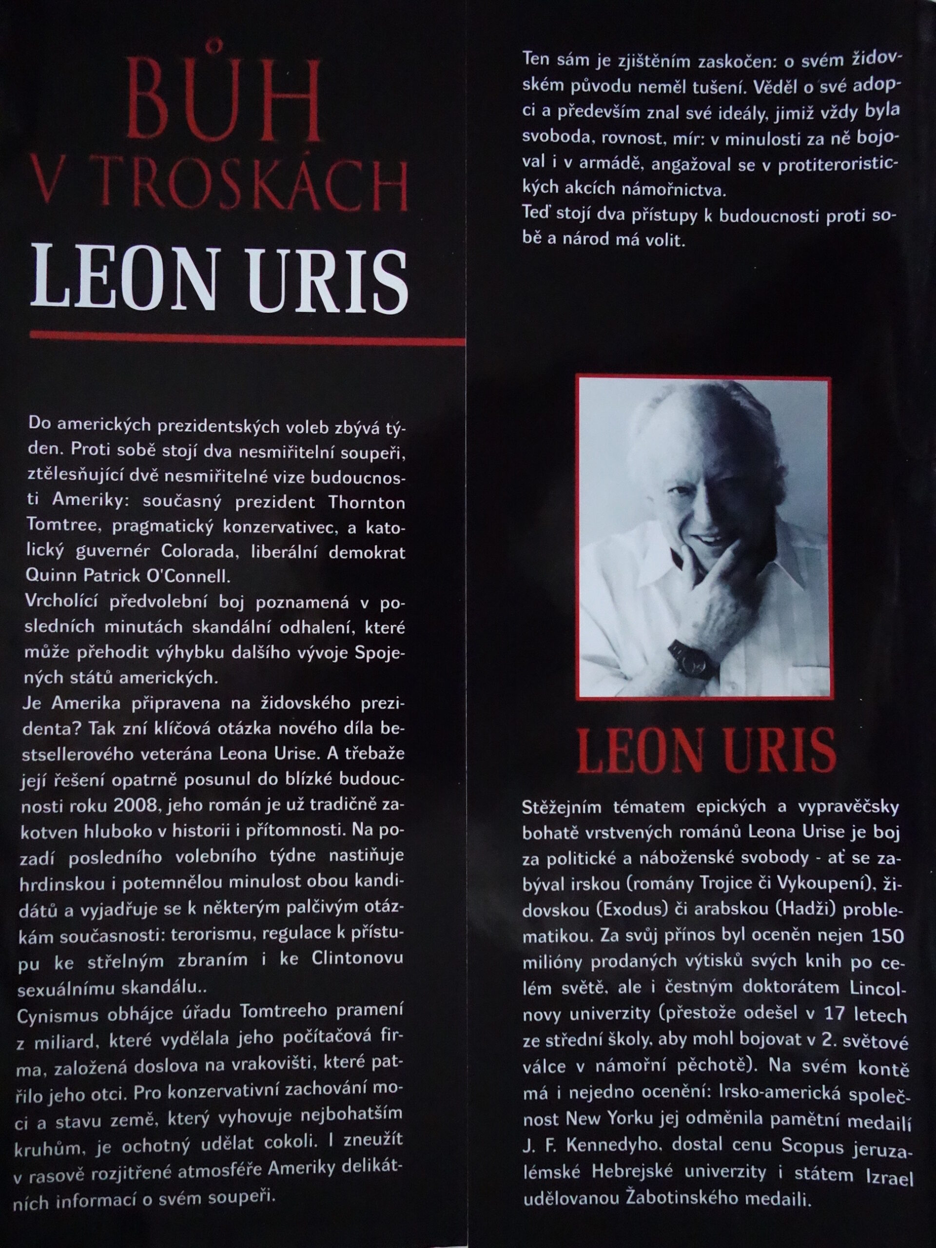 “Dvaja kandidáti na prezidenta sa v novom Urisovom románe stretávajú síce až v roku 2008, avšak zosobňujú smery, medzi ktorými si svet volí od nepamäti: cynický pragmatizmus konzervatívcov a idealizmus liberálov. Epický príbeh s bohatými zábermi do histórie rieši aj naliehavé problémy dneška: terorizmus, kontrolu ozbrojovania i sexuálne aféry.“