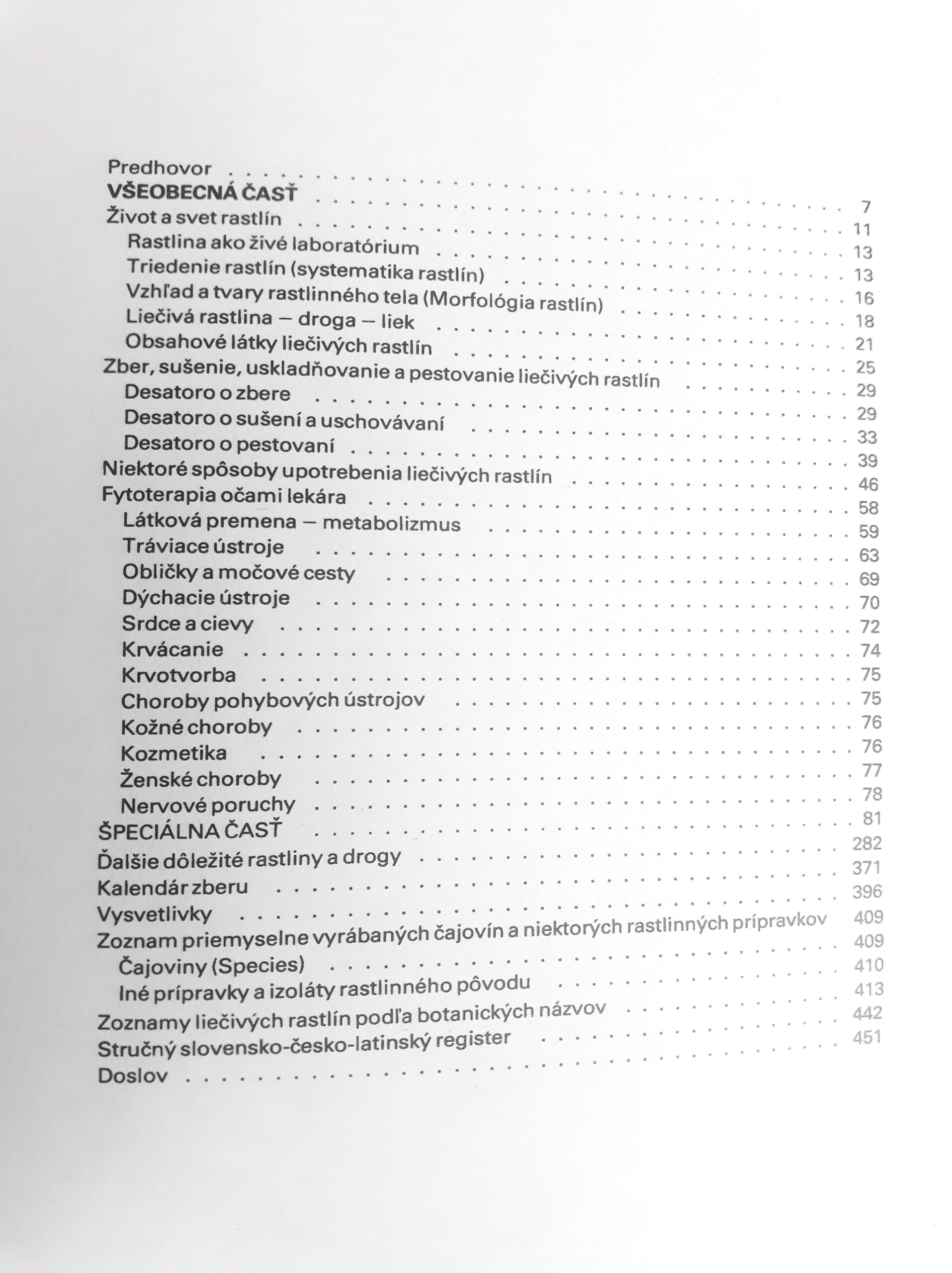 Súčasťou knihy je aj stručný slovenský, český, ruský, anglický, nemecký, maďarský a latinský register názvov rastlín v špeciálnej časti. Oproti staršiemu vydaniu je toto vydanie doplnené o liečivé účinky ovocia a zeleniny a tiež o prípravu čajových, bylinných zmesí na základe viac ako 70-ročných skúseností Ľudmily Thurzovej.