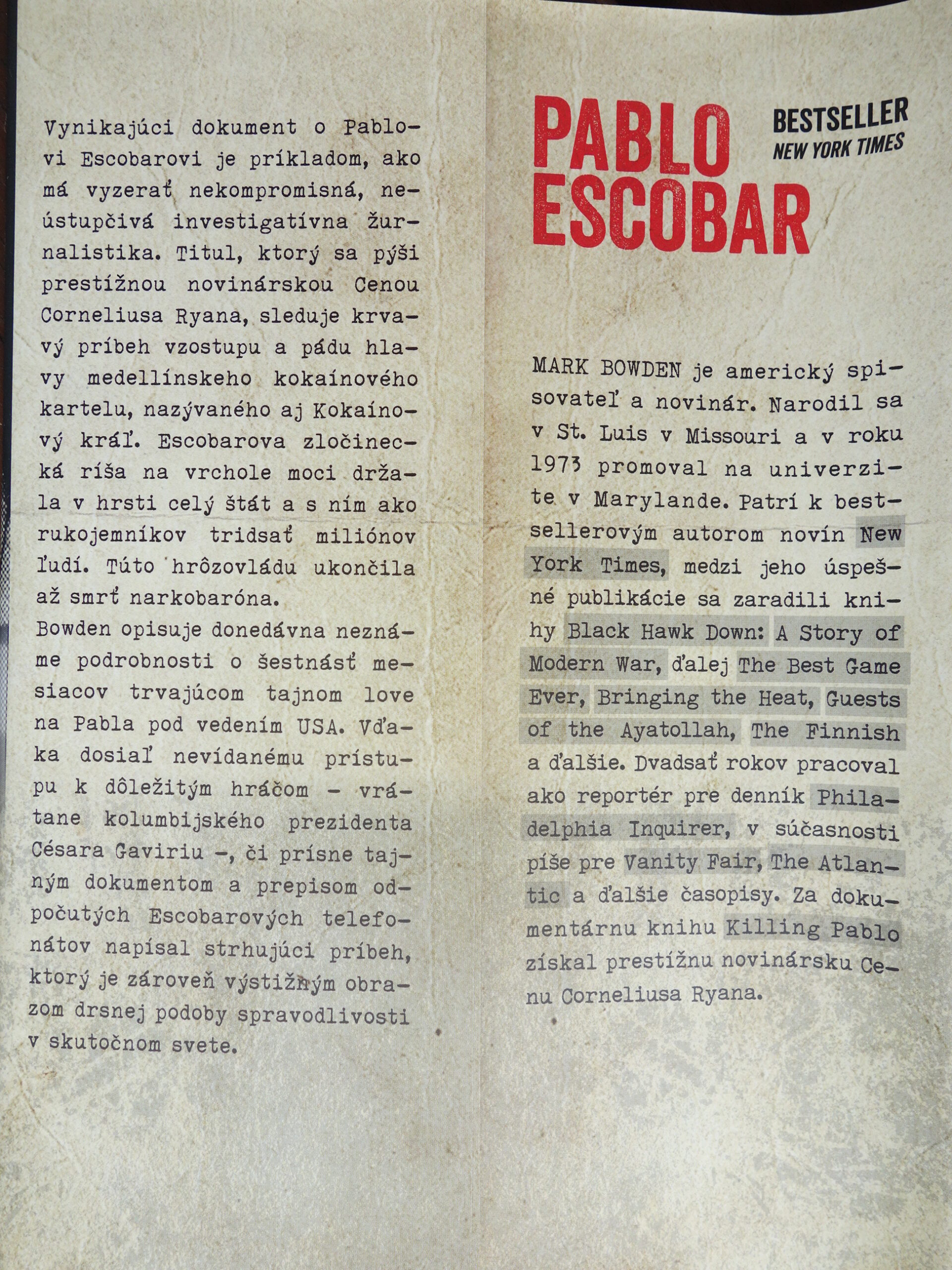 Titul, ktorý sa pýši prestížnou novinárskou Cenou Corneliusa Ryana, sleduje krvavý príbeh vzostupu a pádu hlavy medellínskeho kokaínového kartelu, nazývaného aj „Kokaínový kráľ“. Escobarova zločinecká ríša na vrchole moci držala v hrsti celý štát a s ním ako rukojemníkov tridsať miliónov ľudí. Túto hrôzovládu ukončila až smrť narkobaróna……