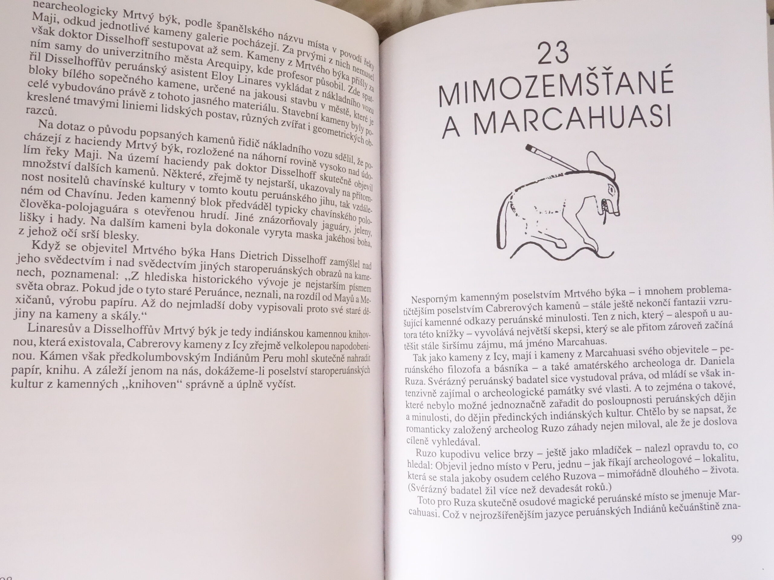 Proč?, Vyslovme jméno Peru, Sníh, voda a písek, Na počátku byl kámen, Od tykve k pyramydě, Japonci v Chrámu zkřížených rukou anebo konec začátku, Chavínská exploze, Než prišla potopa, Po stopách jaguára, Poloostrov mumií, Město mrtvých v peránské poušti, Módní přehlídka v Paracasu, A nyní Nazca, Lovci lebek na dalekém jihu, Špatné honoráře očního lékaře &graffona, V nějvětší obrazové galerii světa, Profesorka matematiky na laně, Šest otázek nazcanské poušti, Uctívači kalendáře, uctívači hvězdIndiáni ve vzduchu, indiáni ze vzduchu, Pohřeb balonem, Četba v kamenných knihovnách, Svědectví mrtvého býka, atď…
