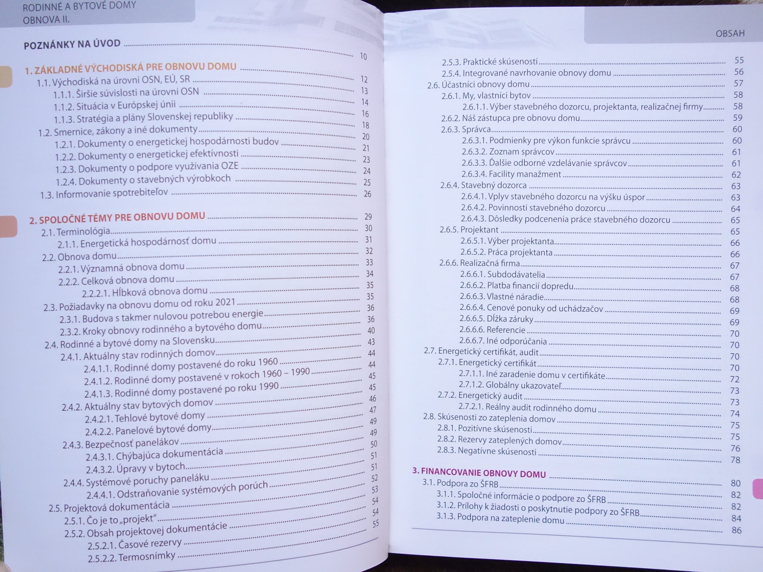 Z obsahu: Základné východiská pre obnovu domu, Spoločné témy pre obnovu domu, Financovanie obnovy domu, Výmena výplní otvorov, Zateplenie obvodného plášťa domu, Obnoviteľné zdroje energie, Výber zdroja tepla, chladu a elektriny, a energie, Vnútorné prostredie, osvetlenie, inteligentný dom, Vnútorné rozvody, výťahy, ohrev pitnej vody…