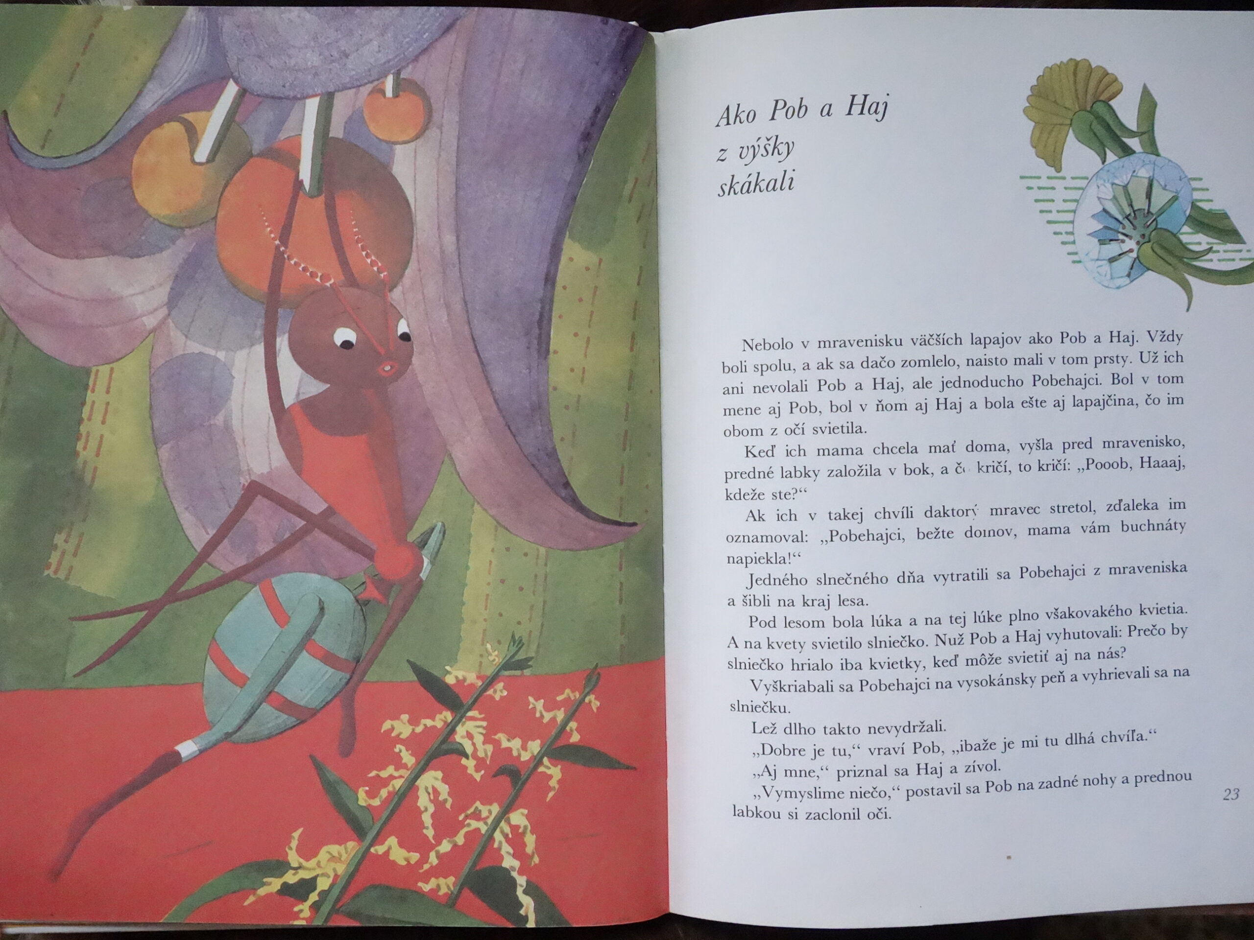 Príbehy Srnčeka Parožteka a jeho kamarátov a Dvoch mravcoch, doplnené peknými a farebným ilustráciami .od Jozefa Baláža a Eugénie Lehotskej.