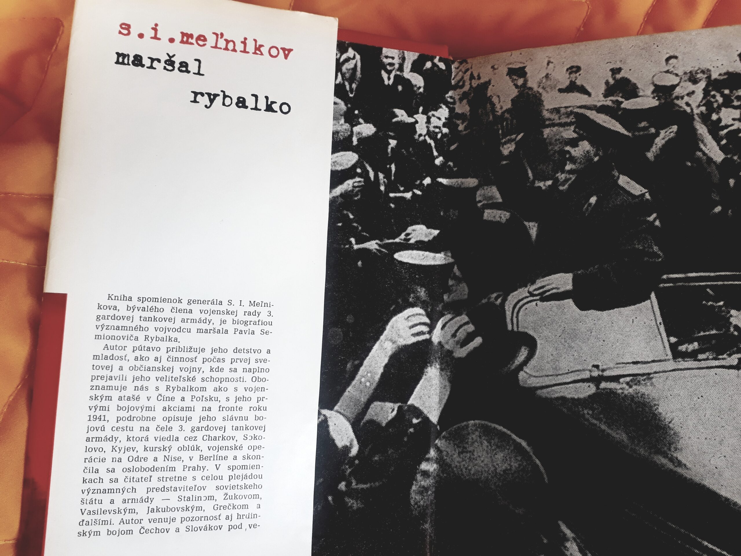 Spomienky bývalého člena vojenskej rady 3. gardovej tankovej armády, hrdinu Sovietskeho zväzu generálporučíka S. I. Meľnikova, priateľa a spolubojovníka legendárneho veliteľa armády, približujú najdôležitejšie momenty Rybalkovho života. Komisár v občianskej vojne, sovietsky vojenský diplomat, veliteľ tankových armád na východnom fronte a veliteľ tankových a mechanizovaných vojsk Sovietskej armády v povojnovom období – taká je životná púť dvojnásobného hrdinu Sovietskeho zväzu maršala tankových vojsk Pavla Semionoviča Rybalka.