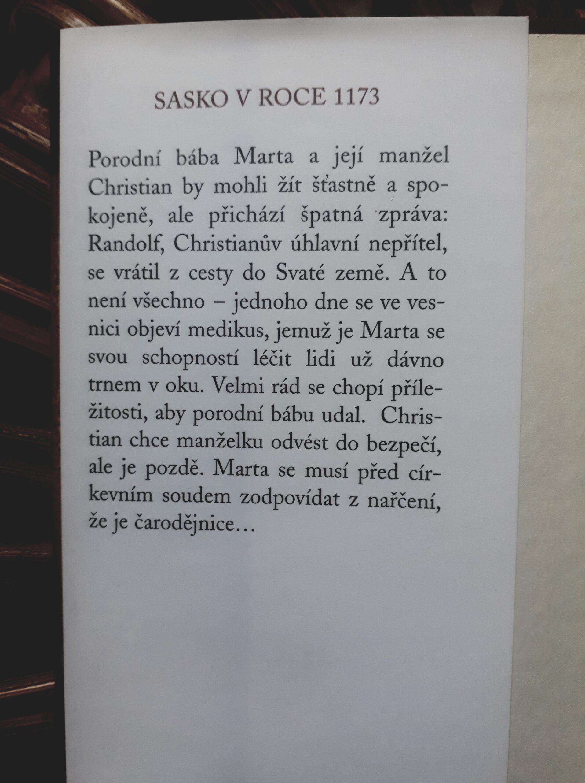 Druhý díl pětidilné německé ságy z temného středověku. Sasko v roce 1173 Porodní bába Marta a její manžel Christian by mohli žít šťastně a spokojeně, ale přichází špatná zpráva: Randolf, Christianův úhlavní nepřítel, se vrátil z cesty do Svaté země. A navíc se ve vesnici objeví medikus,…