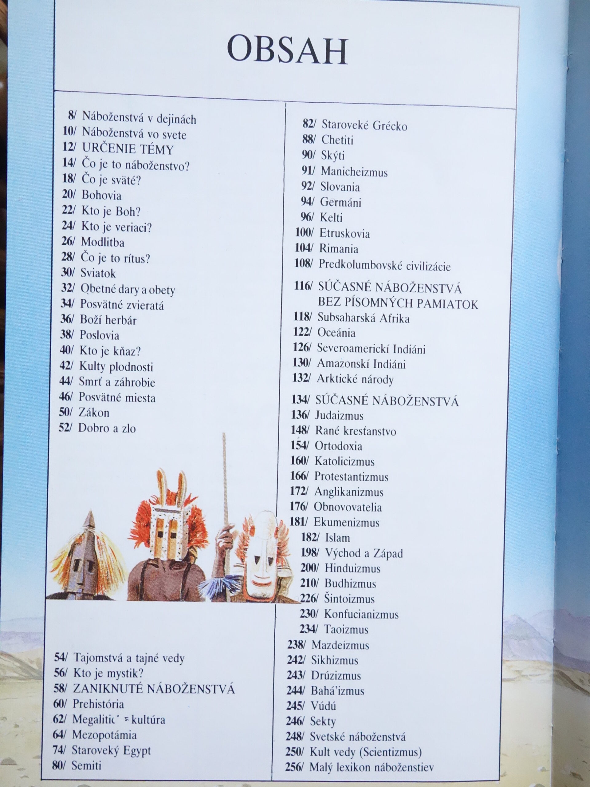 Knižka odhaľujúca tajomstvá a historické korene zaniknutých a súčasných náboženstiev. Nechýba judaizmus, budhizmus, prostestantizmus, islam, hinduizmus, voodoo, konfucianizmus, sekty a množstvo ďalšieho. Všetko to dopĺňa veľké množstvo názorných a farebných ilustrácií.