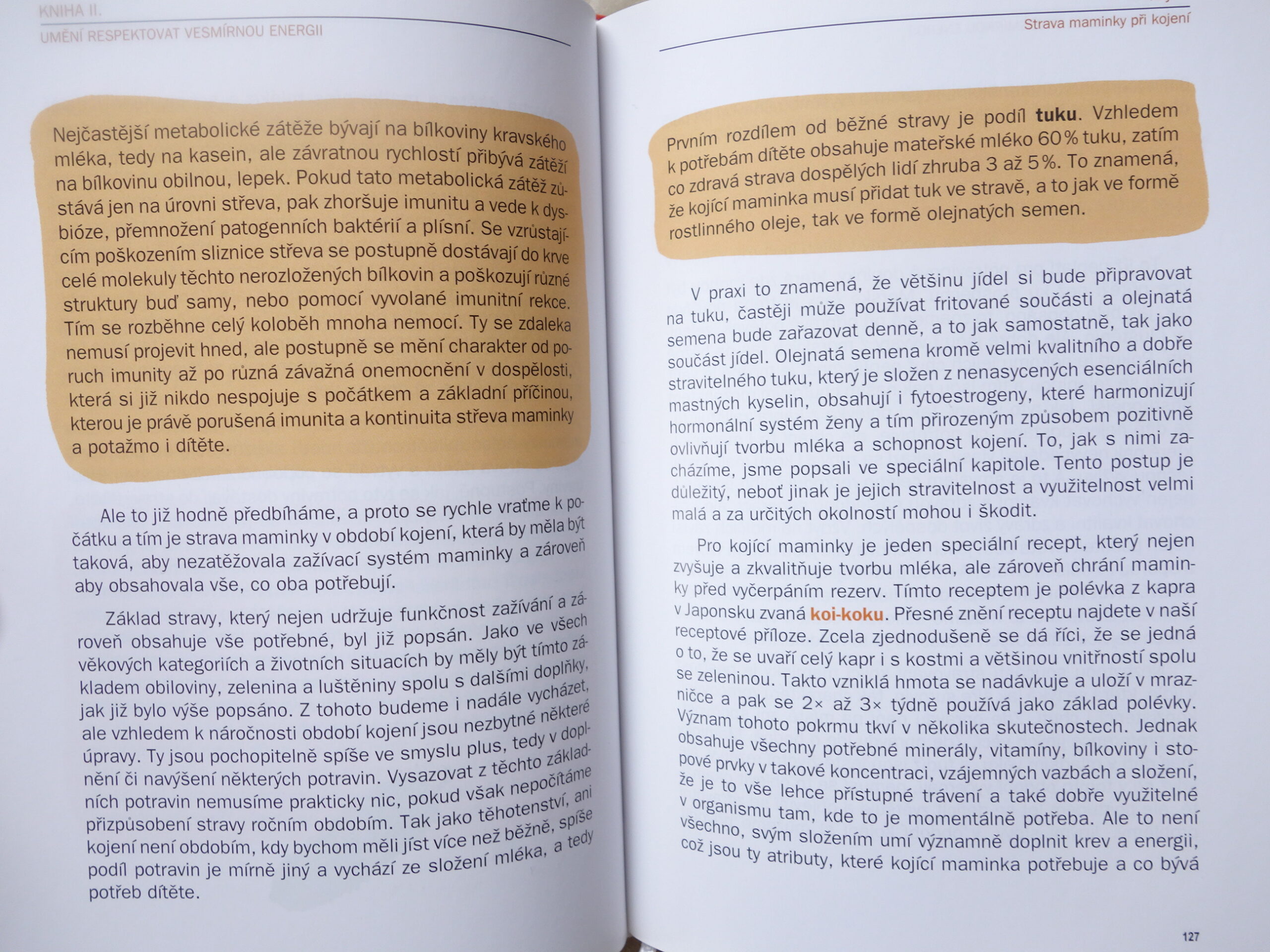 Kniha II Umění respektovat vesmírnou energii – Před početím, Těhotenství a porod, Kojení, První rok života dítěte, Druhý rok života dítěte, Nemocné dítě