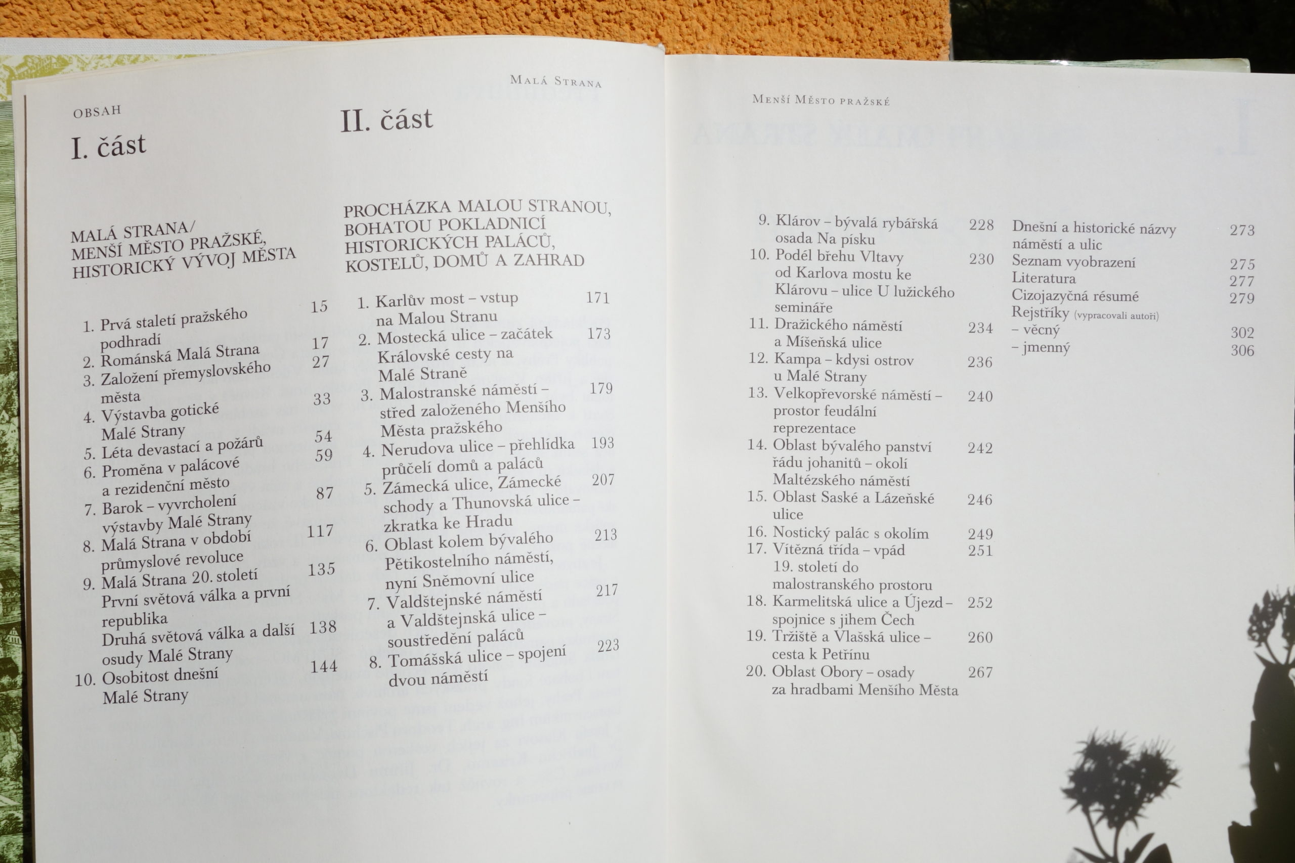 Publikácia je určená urbanistom, architektom, pracovníkom, ktorí sa zaoberajú stavebnými rekonštrukciami, pamiatkárom i širokej verejnosti, ktorí majú záujem o históriu a po architektonickej stránke úplne jedinečnú časť Prahy – Malú Stranu. Obsahuje množstvo textu, čiernobielych historických fotografií, rozkladacie nákresy historických budov a podrobnú, voľne vloženú mapu tejto mestskej štvrte.