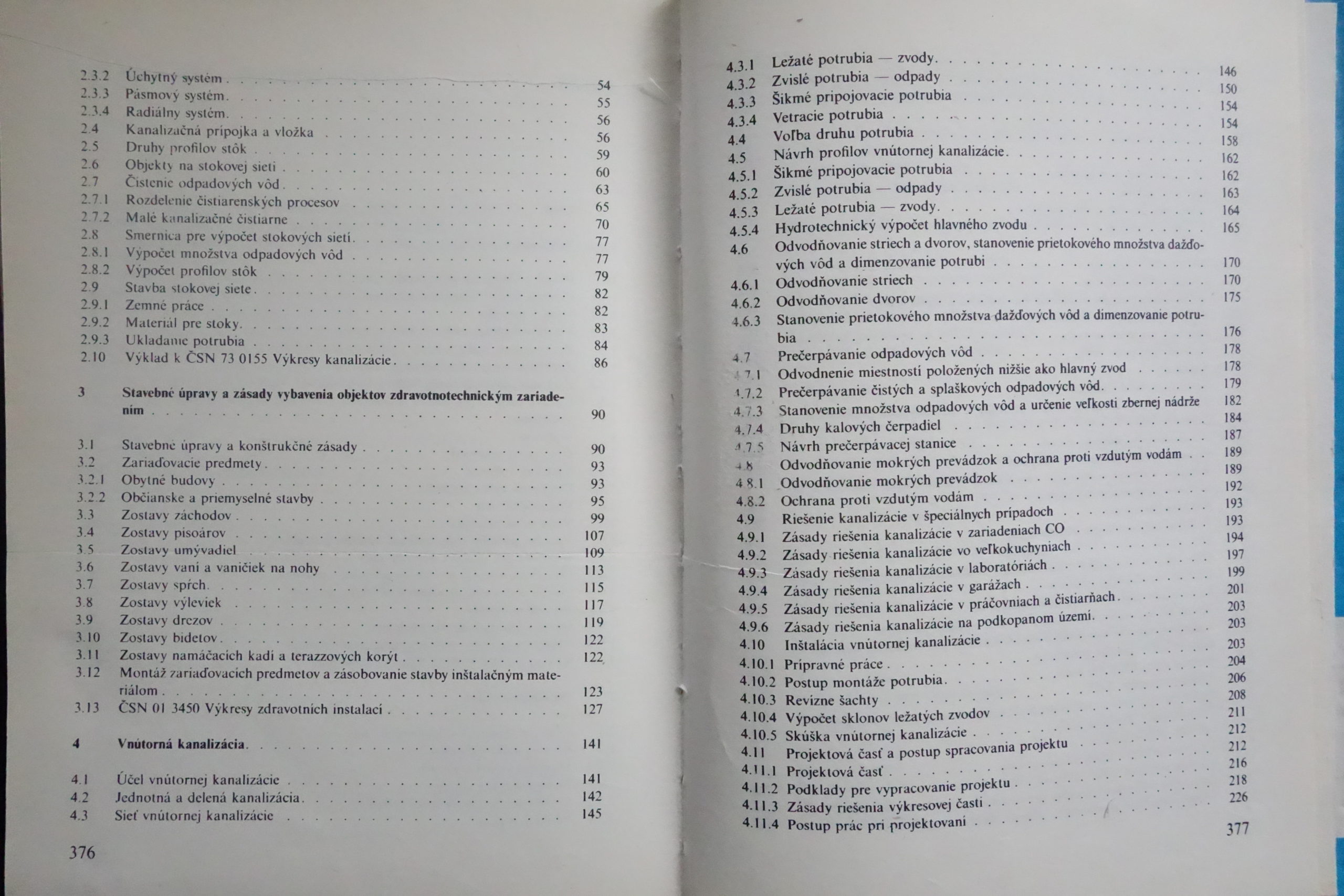 Učebnica sa zaoberá čerpaním pitnej vody, jej rozvodom a odvádzaním odpadových vôd. Opisujú sa v nej zariadenia, vnútorná kanalizácia a vnútorné vodovody v obytných budovách, v priemysle, poľnohospodárstve a verejných objektoch. Posledná kapitola sa venuje typizácii a spriemyselneniu zdravotných inštalácií.