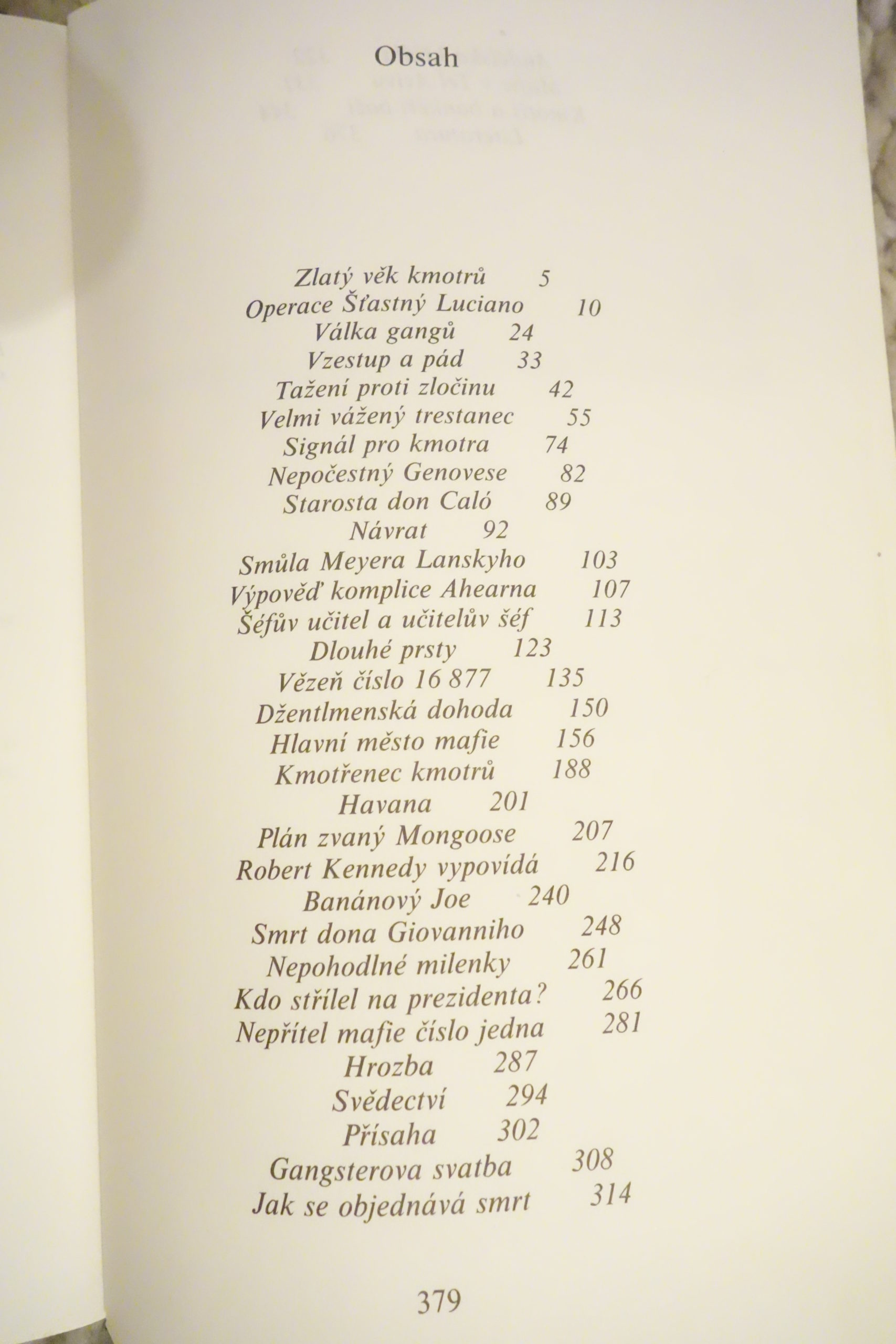 Kniha podáva informácie o americkej mafii… o jej zväzkoch s vládnymi inštitúciami a svetovým kapitálom. Rozpráva o slávnych mafiánoch, o vplyvných ” krstných otcov ” aj o verejných politických osobnostiach, ktorých politickú kariéru… mafia vytvorila či zničila. Kniha je zároveň svedectvom o dlhoročnom boji polície s mafiou ,ktorý však až doteraz nebol príliš úspešný .