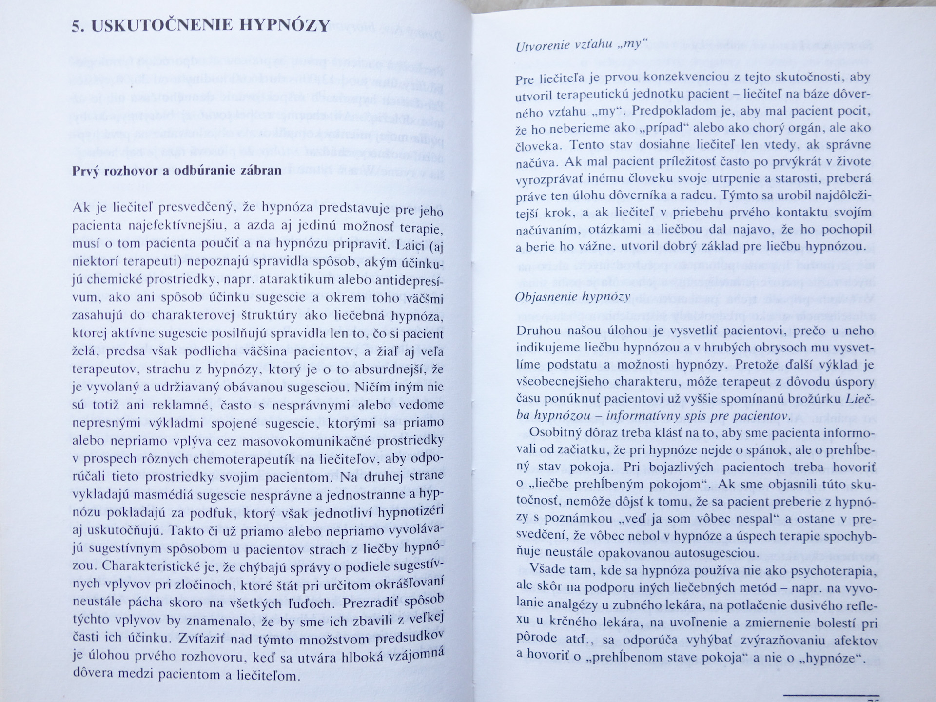Vymedzenie pojmov, Dejiny a hypotézy k psychológii a fyziológii hypnózy, Možnosti a oblasti použitia, Predpoklady, Uskutočnenie hypnózy, Prehľad mimo medicínskeho použitia hypnózy, Hypnóza a ko liečebná metóda a formy jej použitia, Indikácie, Kontraindikácie a nebezpečenstvá,