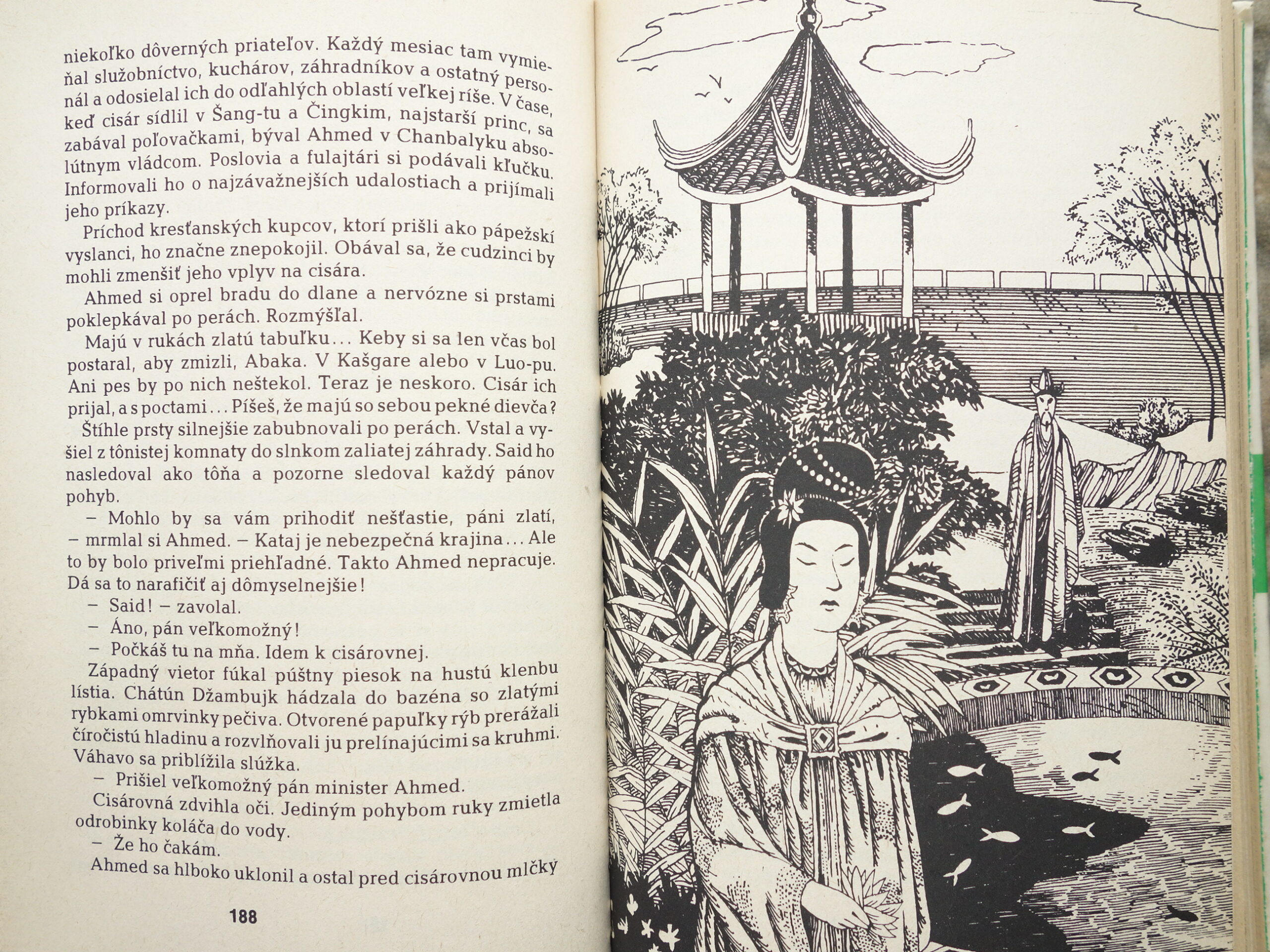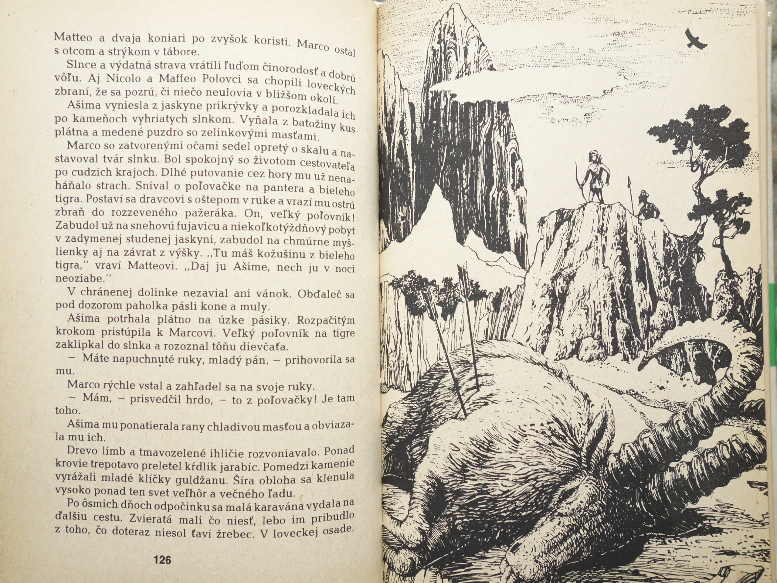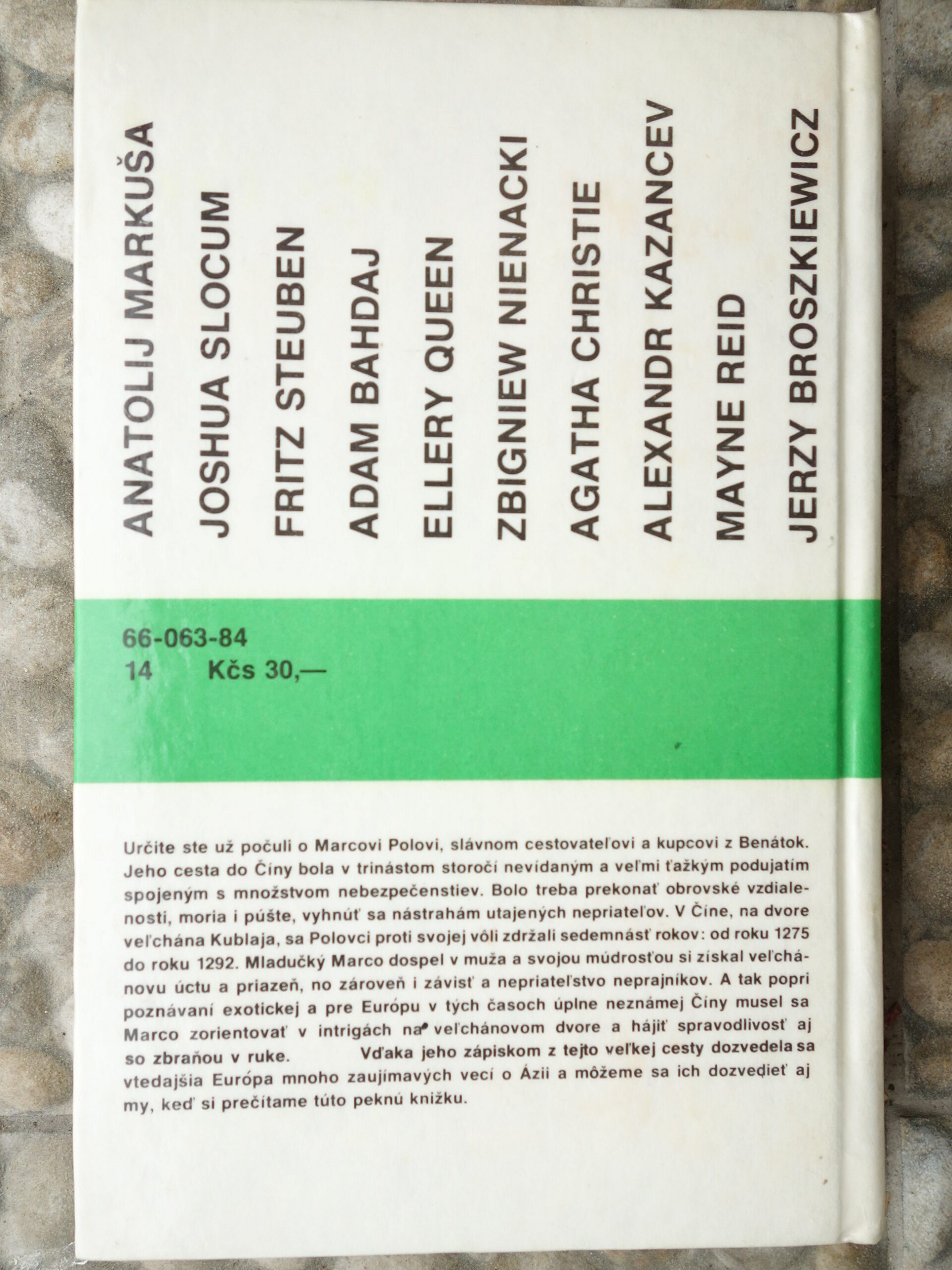 “Marco Polo bol slávnym cestovateľom a kupcom z Benátok. Jeho cesta do Číny bola v trinástom storočí nevídaným a veľmi ťažkým podujatím spojeným s množstvom nebezpečenstiev. Bolo treba prekonať obrovské vzdialenosti, moria i púšte, vyhnúť sa nástrahám utajených nepriateľov. V Číne, na dvore veľchána Kublaja, sa Polovci proti svojej vôli zdržali sedemnásť rokov: od roku 1275 do roku 1292. Mladučký Marco dospel v muža a svojou múdrosťou si získal veľchánovu úctu a priazeň, no zároveň i závisť a nepriateľstvo neprajníkov. A tak popri poznávaní exotickej a pre Európu v tých časoch úplne neznámej Číny musel sa Marco zorientovať v intrigách na veľchánovom dvore a hájiť spravodlivosť aj so zbraňou v ruke. Vďaka Polovým zápiskom, ktoré po čas tejto veľkej ceste robil, dozvedela sa vtedajšia Európa mnoho zaujímavých vecí o Ázii. Súčasný čitateľ sa o nich dozvie zo strán tejto knihy.“